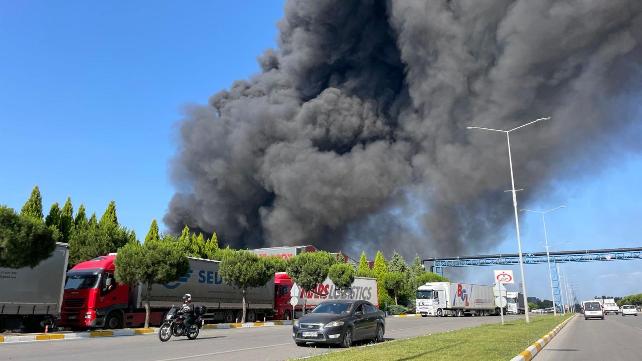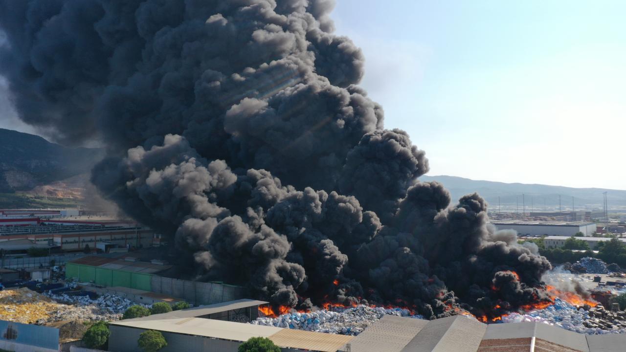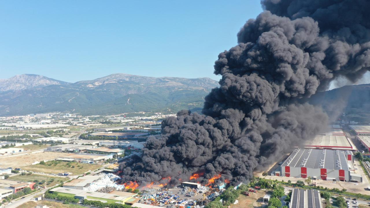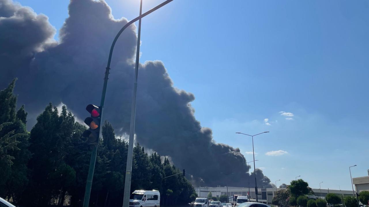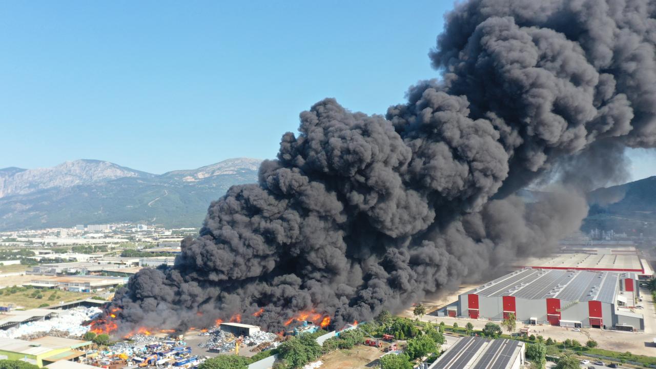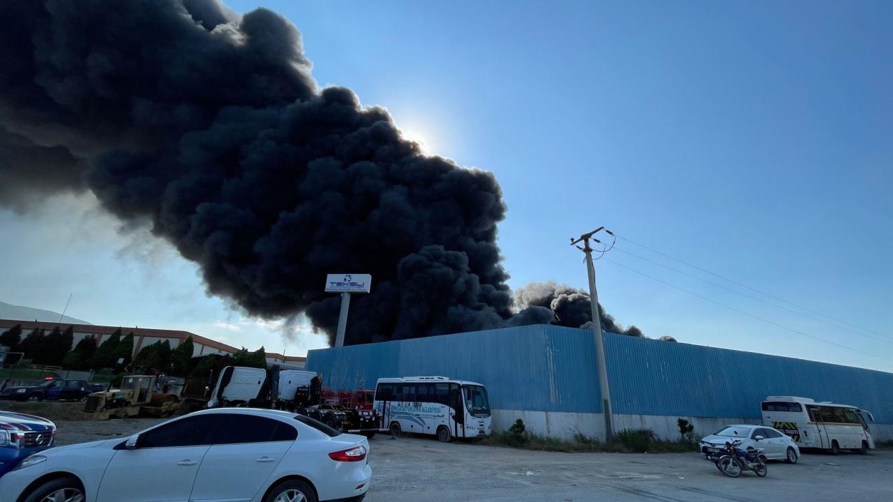 Yangın nedeniyle çıkan duman kentin birçok yerinden görülürken itfaiye ekiplerinin yangına müdahalesi sürüyor.