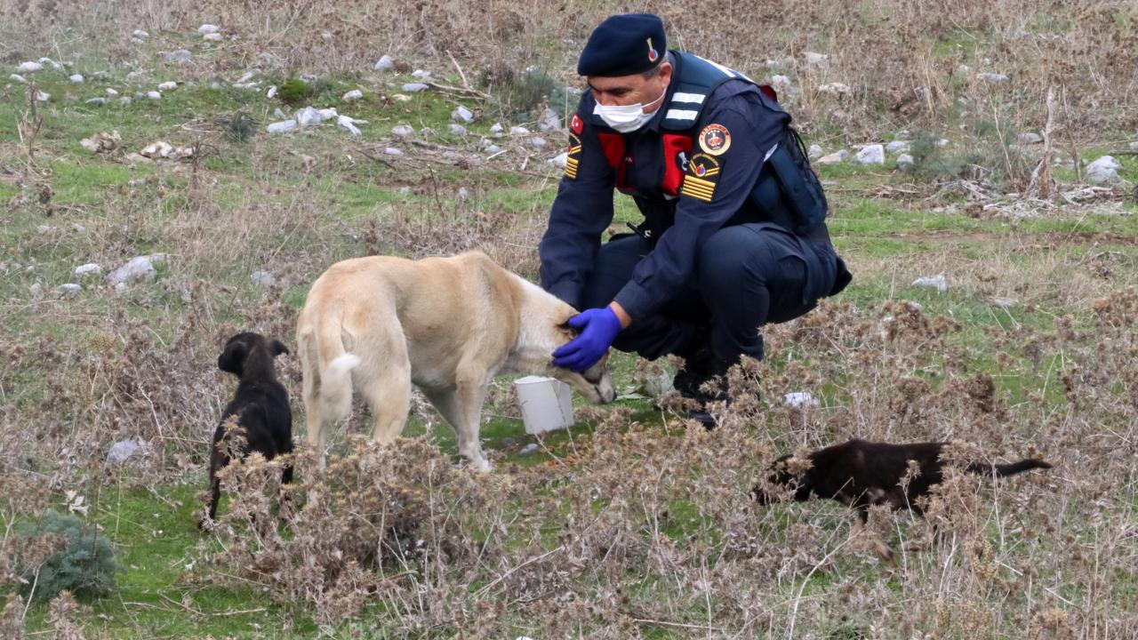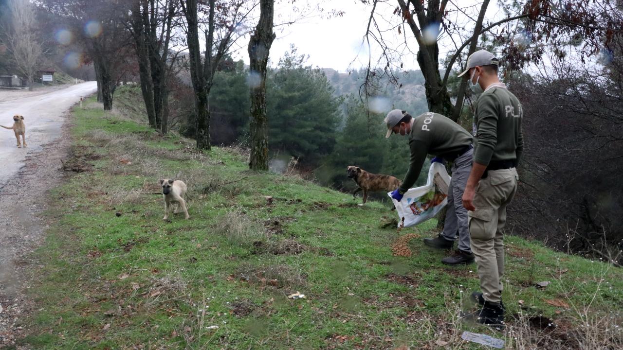 Manisa'da İl Emniyet Müdürlüğü ile İl Jandarma Komutanlığına bağlı Çevre Doğa ve Hayvanları Koruma ekipleri, sokak hayvanları için kentin muhtelif noktalarına yem bıraktı.