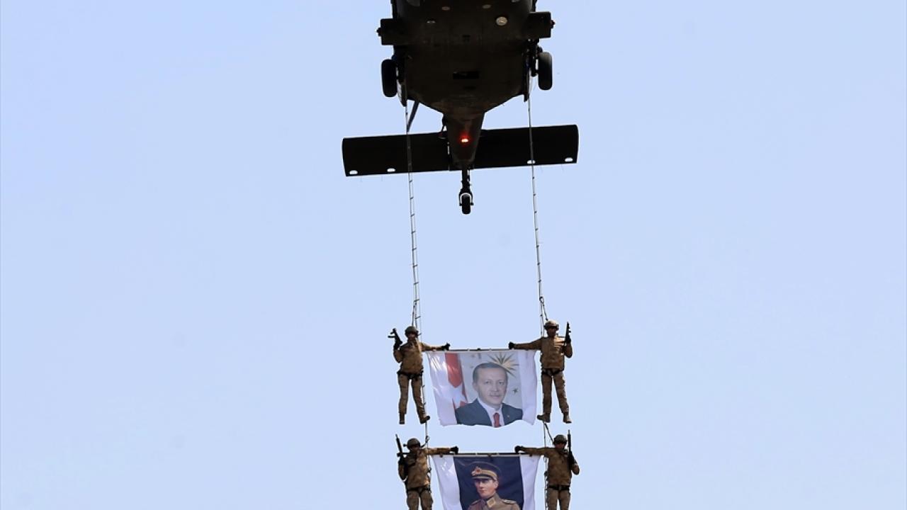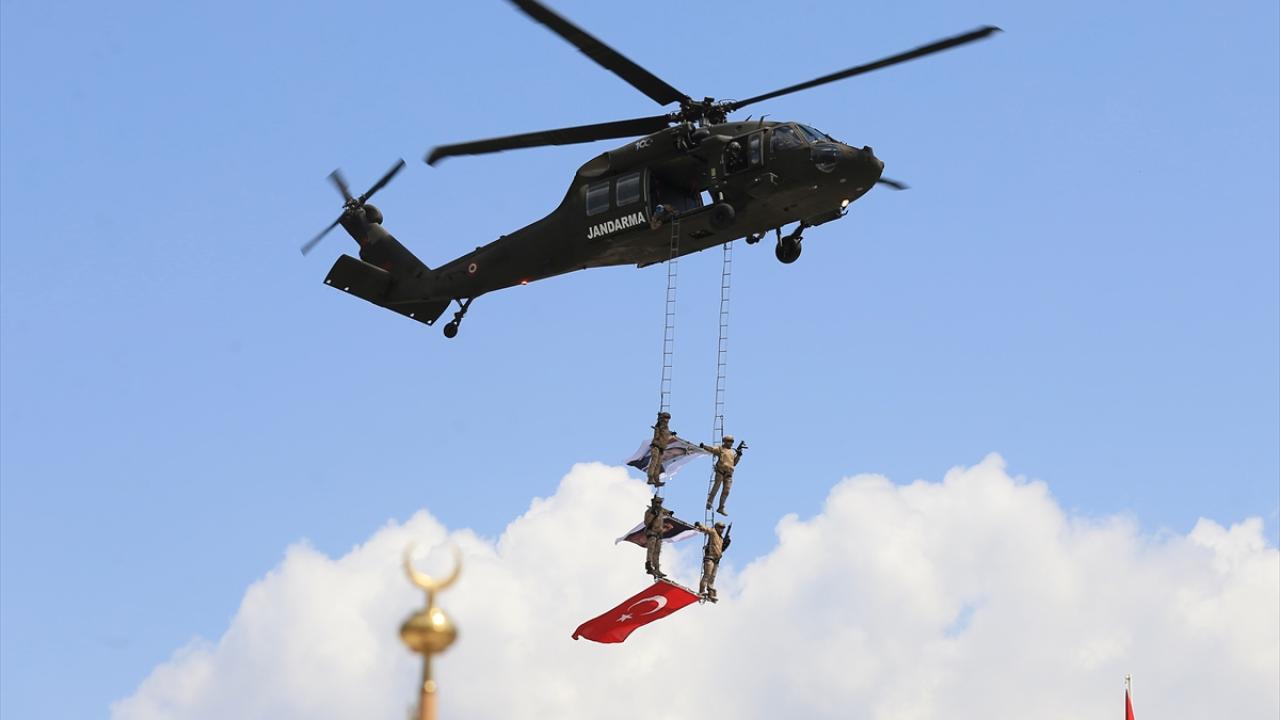 Konuşmaların ardından jandarma ekipleri çeşitli gösteriler yaptı. Foça Jandarma Komando Eğitim Komutanlığına bağlı timler de Jandarma Mehteran Birliği eşliğinde helikopterle "Üzüm Salkımı ve Çelik Kanatlar" gösterisi sundu.