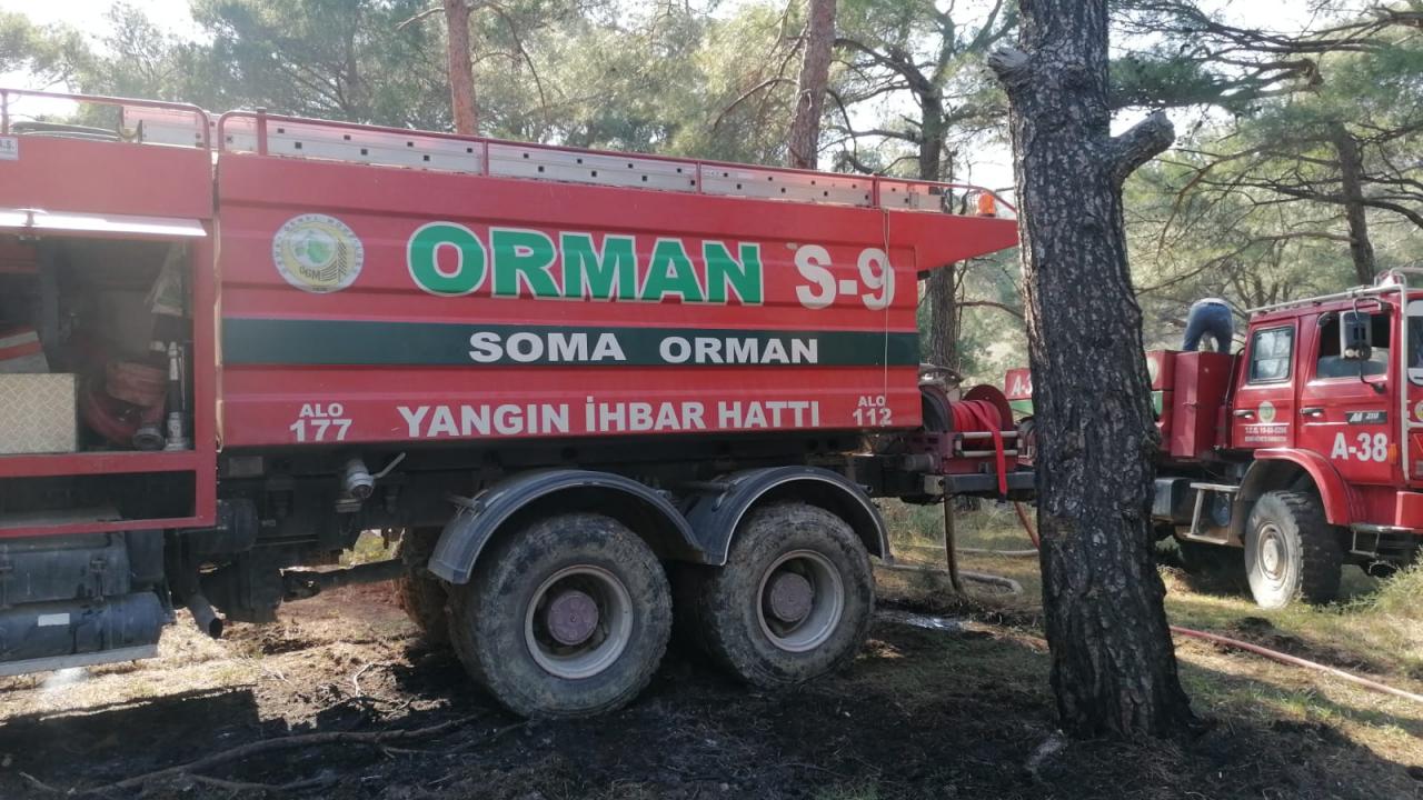 Manisa'nın Soma ilçesinde ormanlık alanda başlayan yangın çıktı. Mahalle sakinlerinin traktörleriyle alevlerin etrafını çevirmesi, yangının daha çabuk kontrol altına alınmasını sağladı.