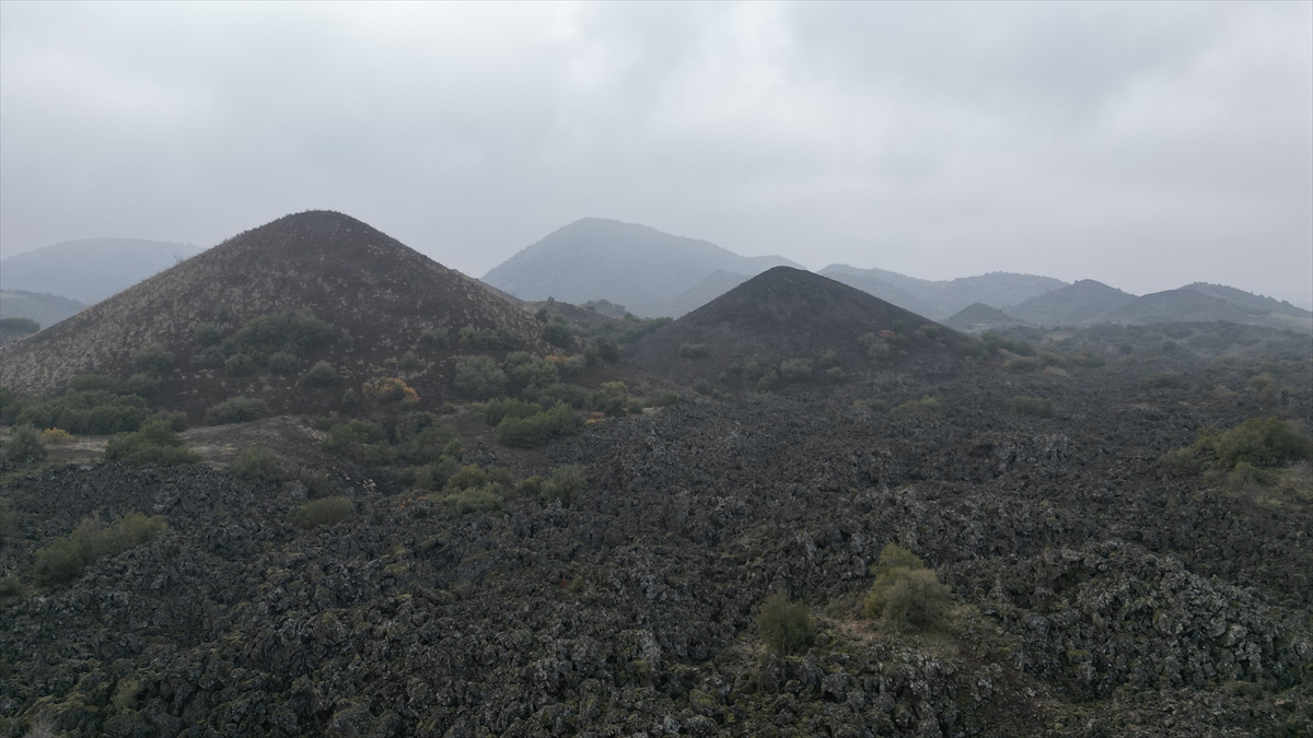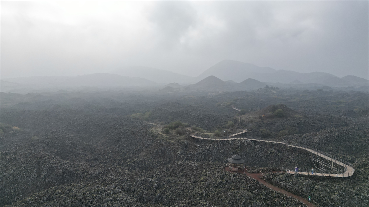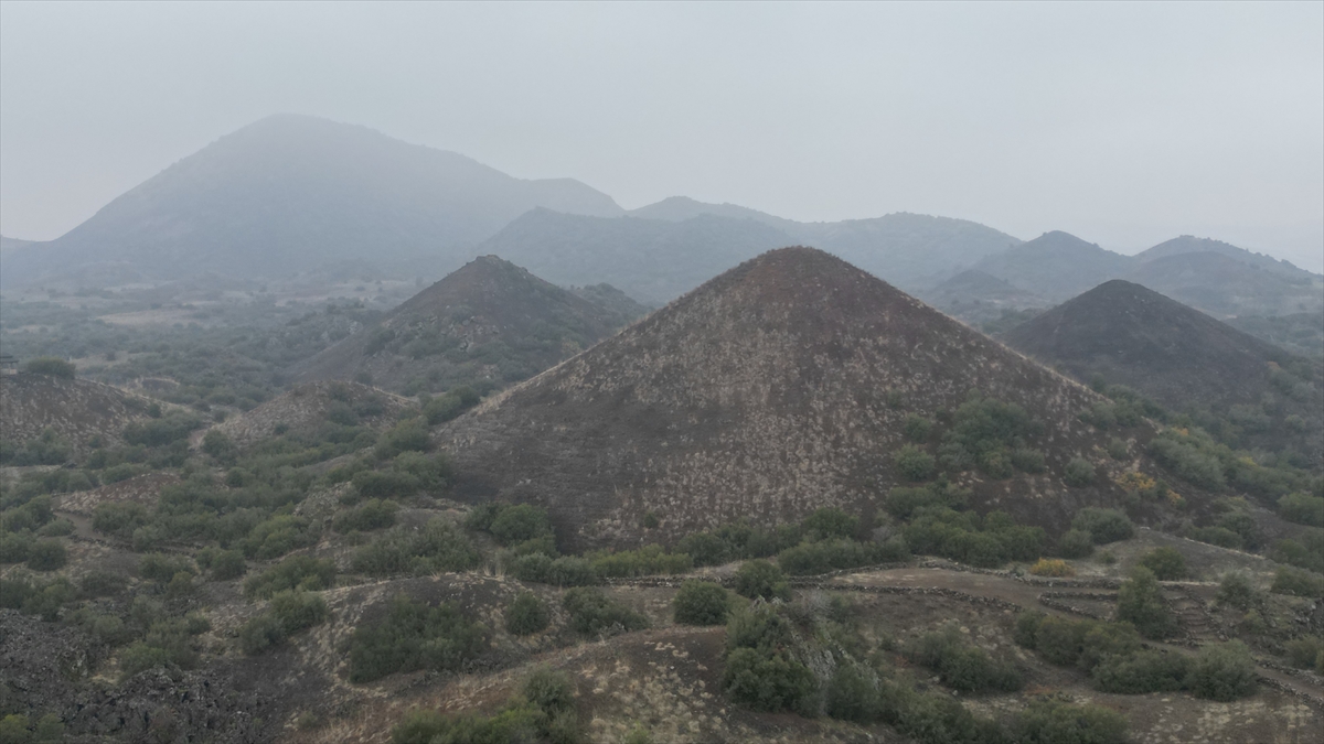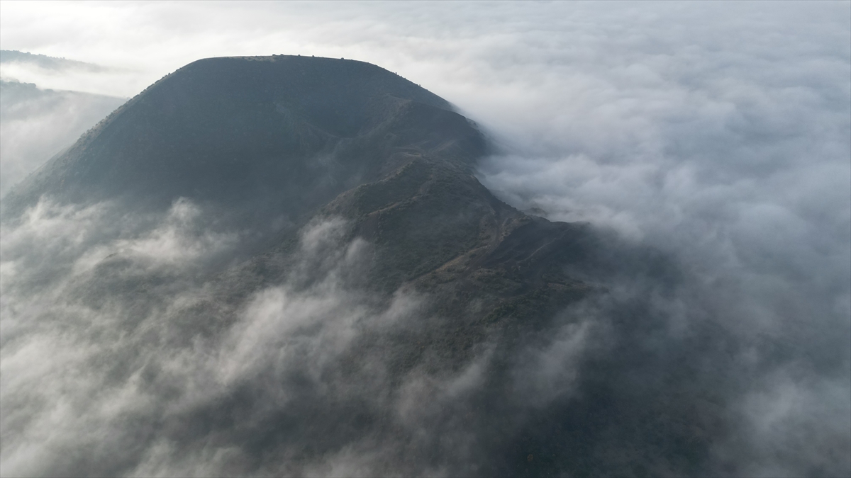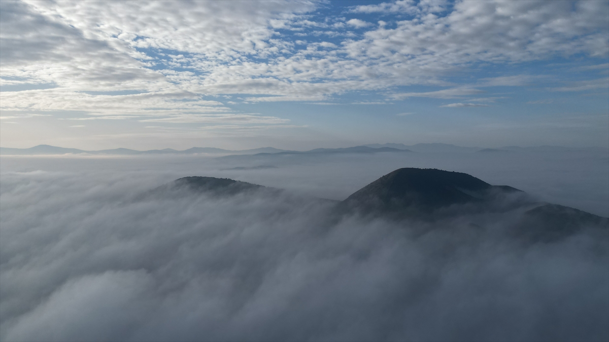 Manisa'da sis altında kalan volkan konileri dronla görüntülendi