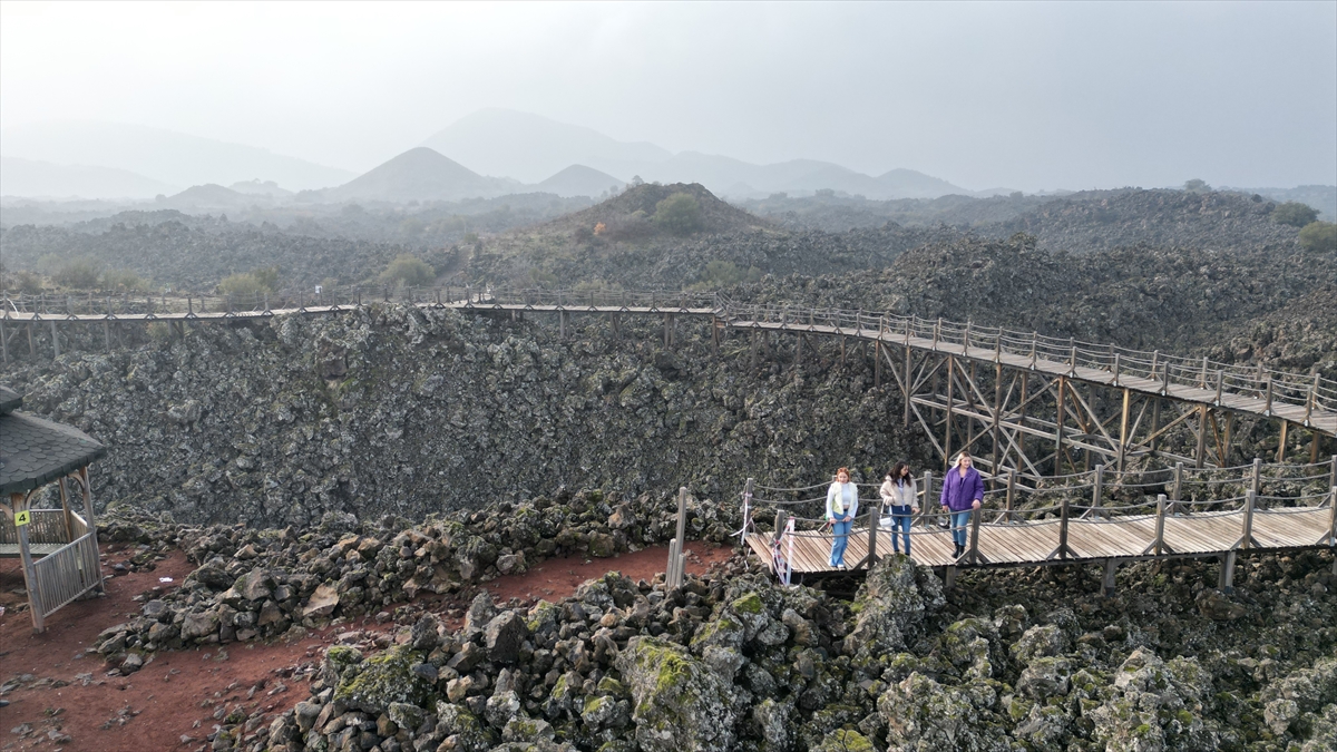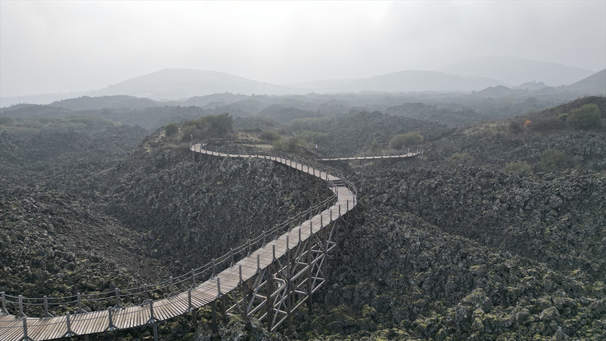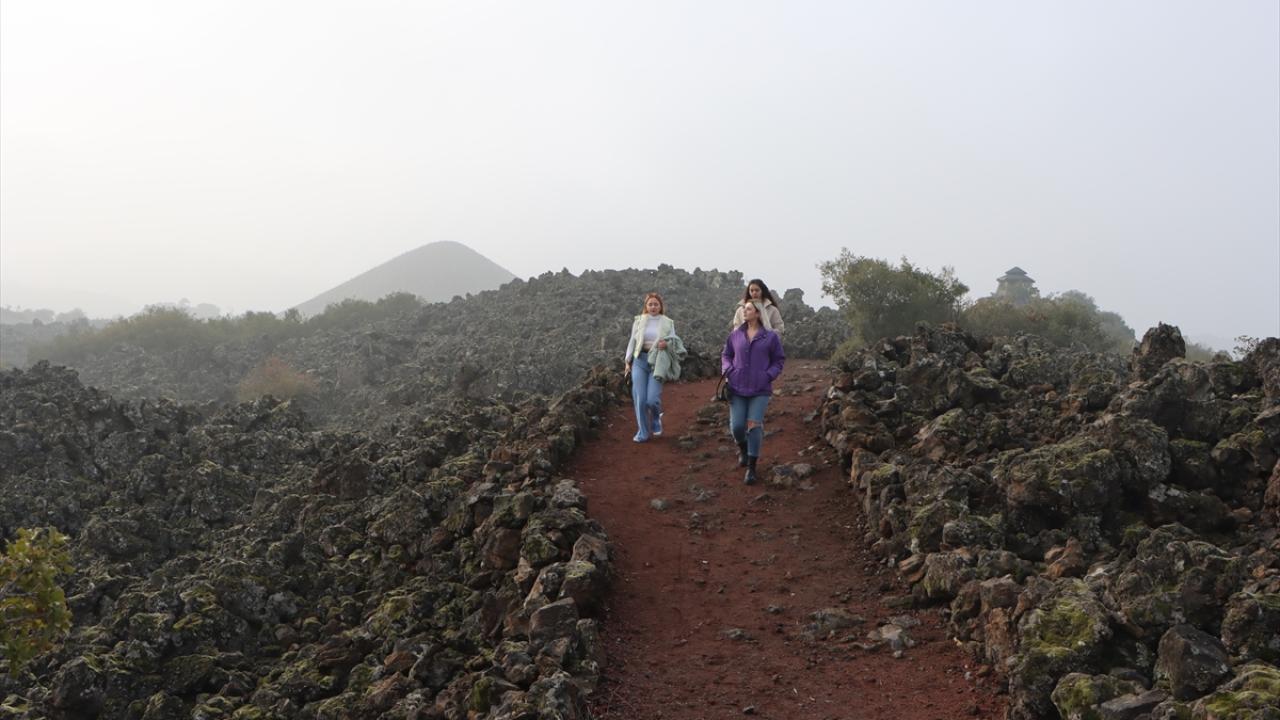 Manisa'nın Kula ilçesindeki Kula-Salihli UNESCO Global Jeoparkı'nda sis güzel görüntüler oluşturdu.