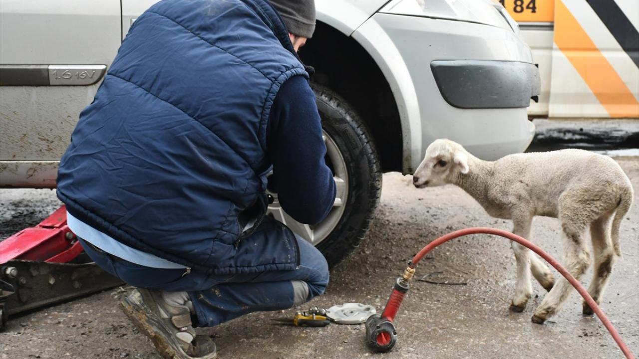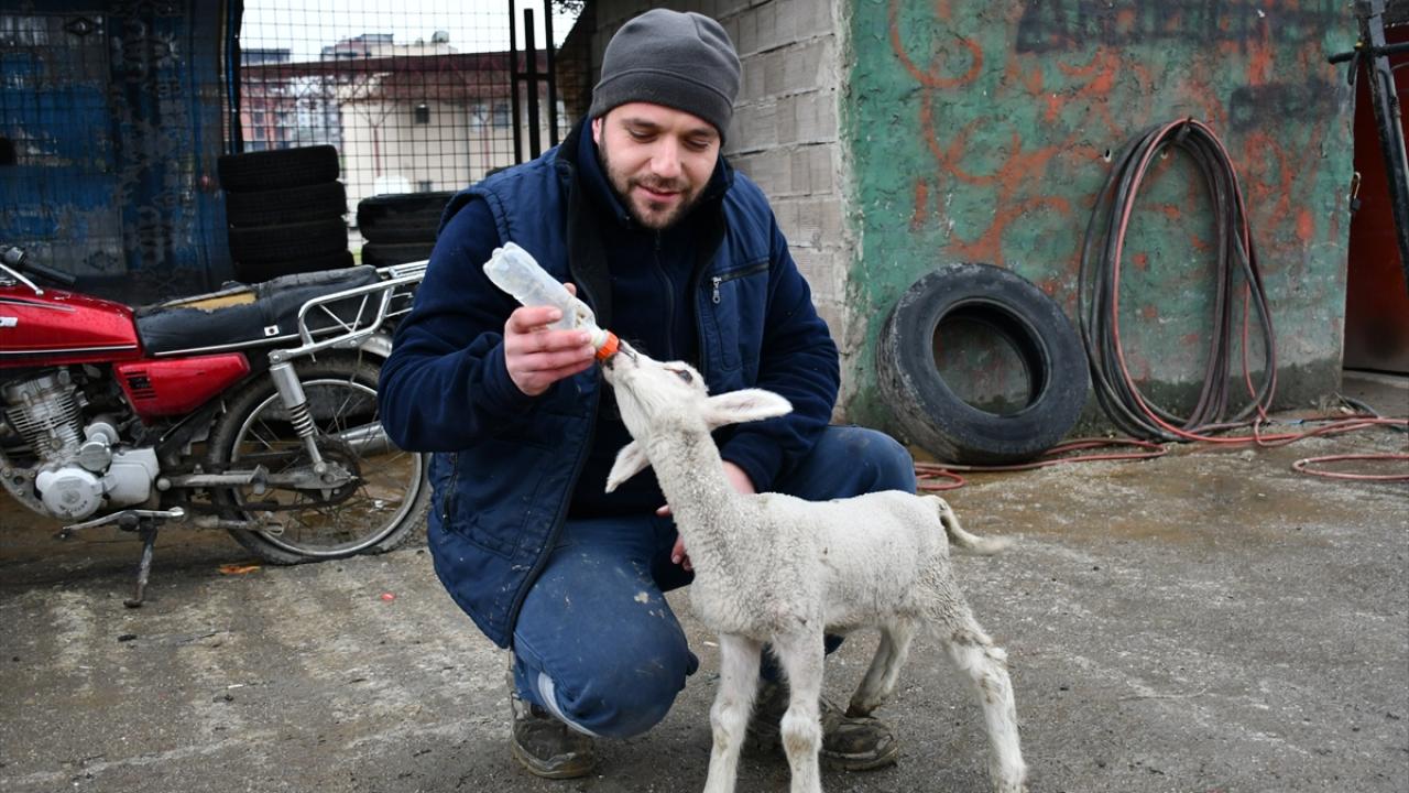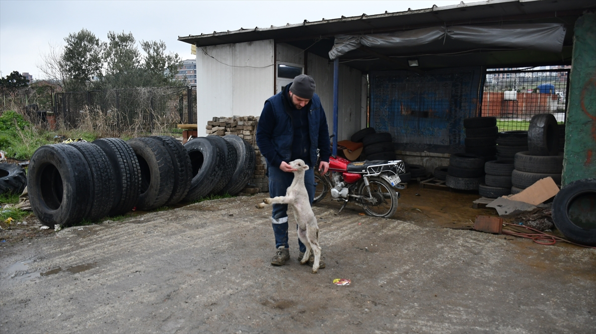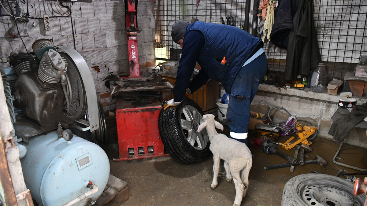 Manisa'nın Turgutlu ilçesinde doğumu sırasında annesini yitiren kuzu, kendisini besleyen lastik tamircisi Mehmet Küçük'ün peşinden ayrılmıyor. Küçük'ün "Sibop" adını verdiği kuzu, bir an olsun yanından ayrılmıyor.