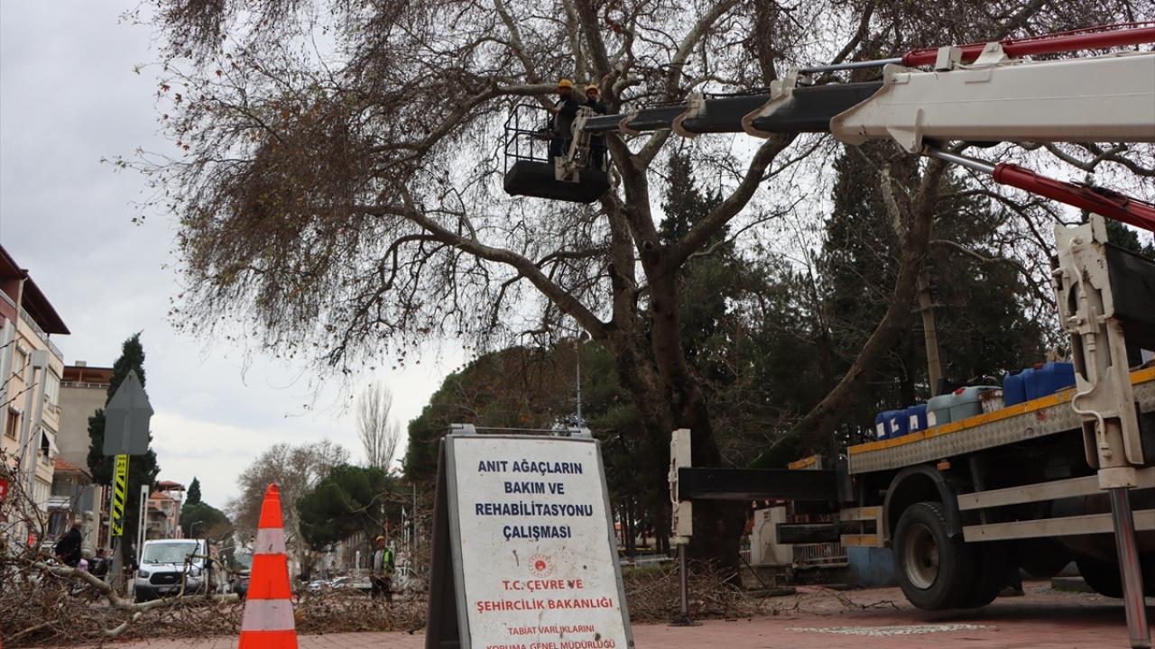 Çevre, Şehircilik ve İklim Değişikliği Bakanlığının çalışması kapsamında Manisa'daki anıt ağaçların bakımı yapılıyor.