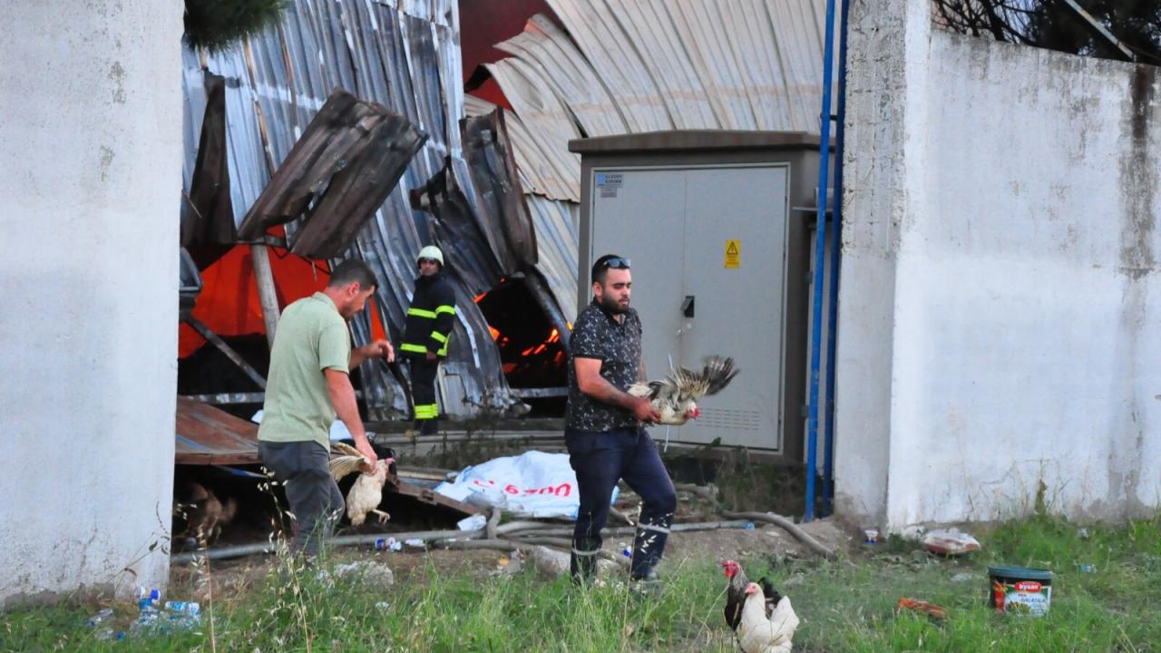 85 dönümlü arazi üzerine kurulu tesisin tamamı yanarken, itfaiyenin dikkati yüzlerce tavuk ve horoz yanmaktan kurtuldu.