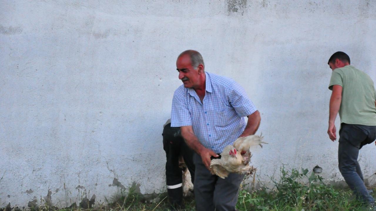 Tavuklar, tesis çalışanları tarafından şirkete ait araçlarla güvenli bölgeye götürüldü.