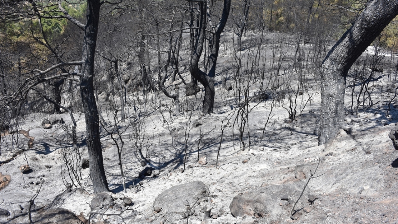 Manisa Büyükşehir Belediyesi İtfaiye Daire Başkanlığı ekiplerinin de destek verdiği yangında ilk belirlemelere göre yaklaşık 35 hektar kızılçam ormanının hasar gördüğü belirtildi. (Fotoğraf: AA)