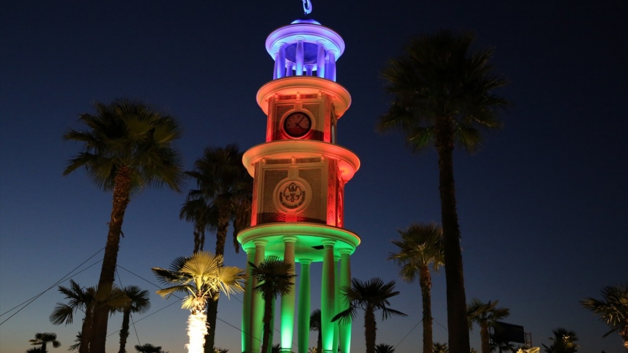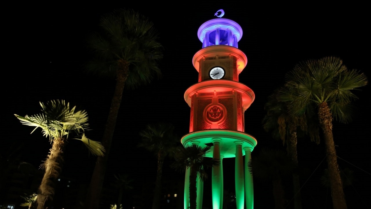 Manisa'daki saat kulesi Azerbaycan bayrağının renkleriyle aydınlatıldı