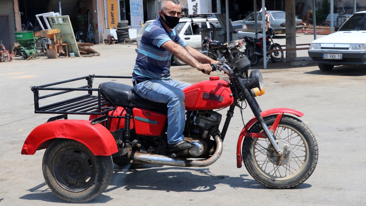 Alaşehir ilçesinde yaşayan Ekrem Özçetin, kullandığı sepetli motosikletten istediği verimi alamayınca hurdaya ayrılmış otomobilin parçalarıyla 3 tekerlekli motosiklet tasarladı