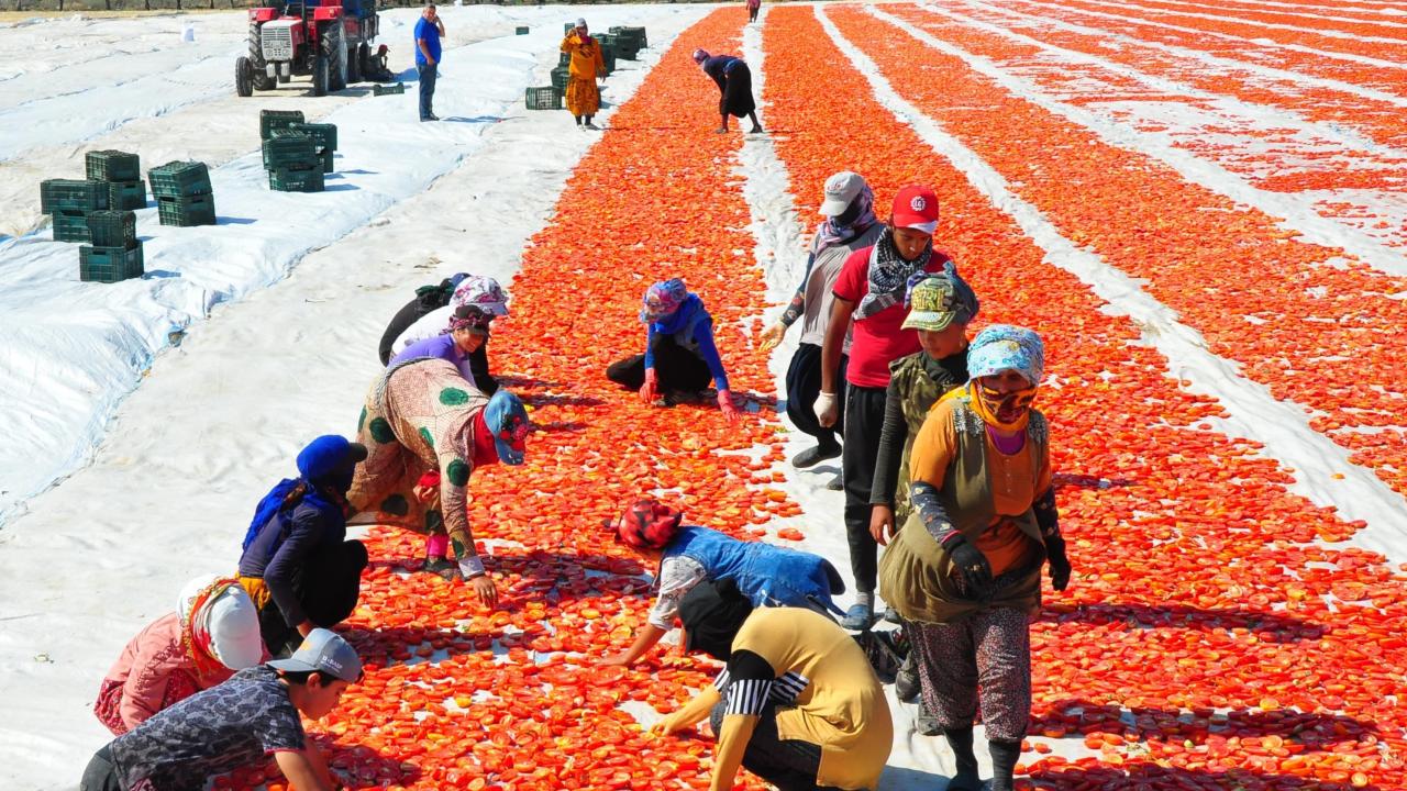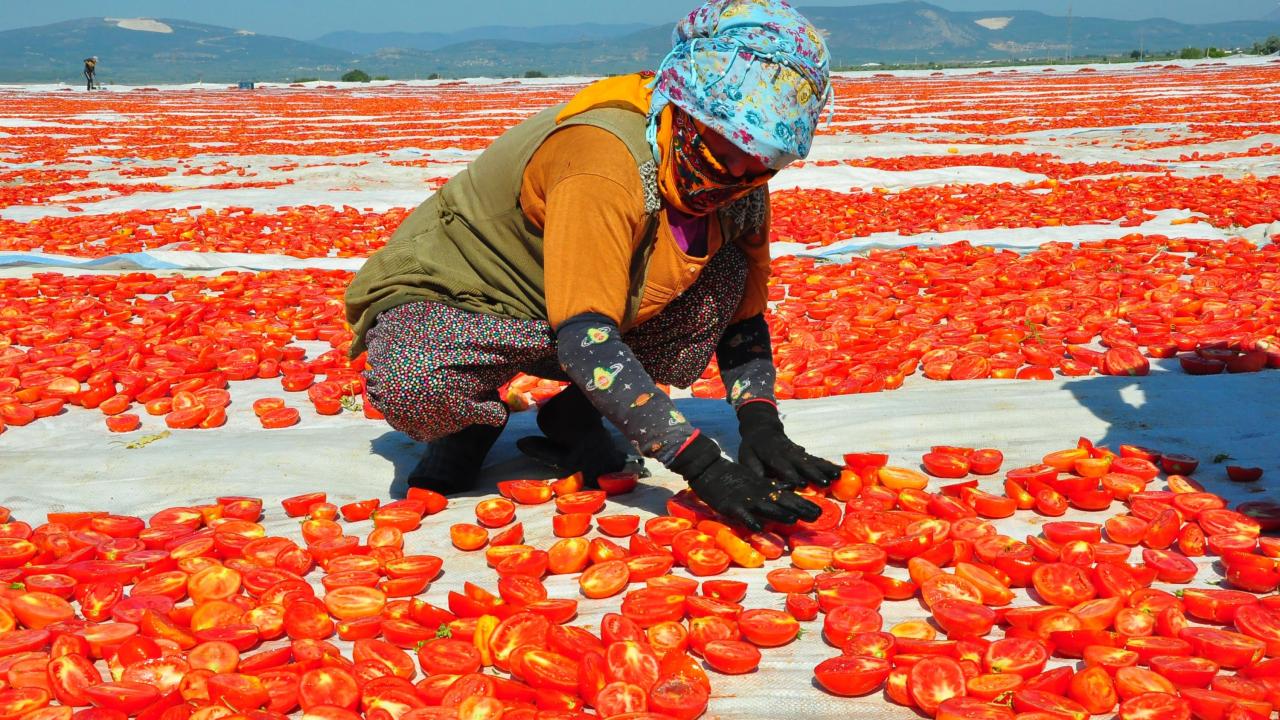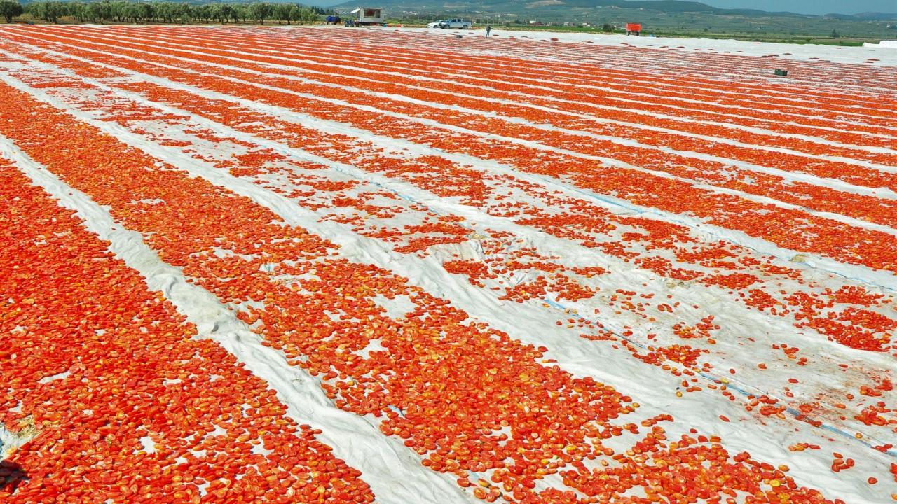 Manisa'nın Saruhanlı ve Turgut ilçelerinde hasat edilen domatesler, kurutulmak için tarlalara serilmeye başlandı. İhracatçı firmalara kilogramı 35 ile 40 TL arasında verilen kurutulmuş domatesler, ABD başta olmak üzere İngiltere, İtalya, Almanya ve Rusya'ya gönderiliyor.