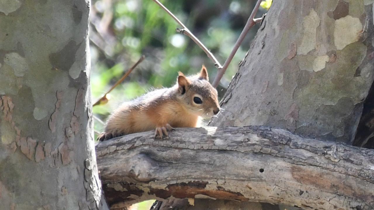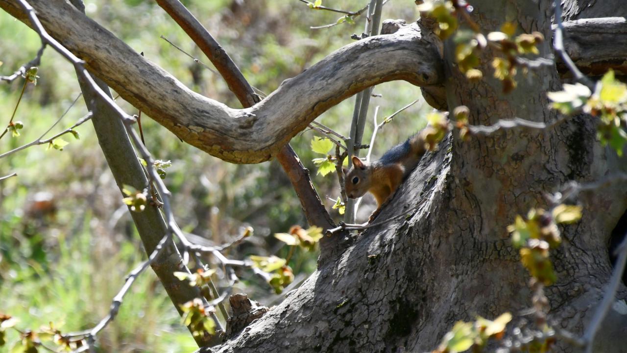 Manisa'nın Turgutlu ilçesinde, yeşil alanları meslek tutan sincaplar, baharın gelmesiyle beraber ağaçların üzerinde yiyecek aradı.