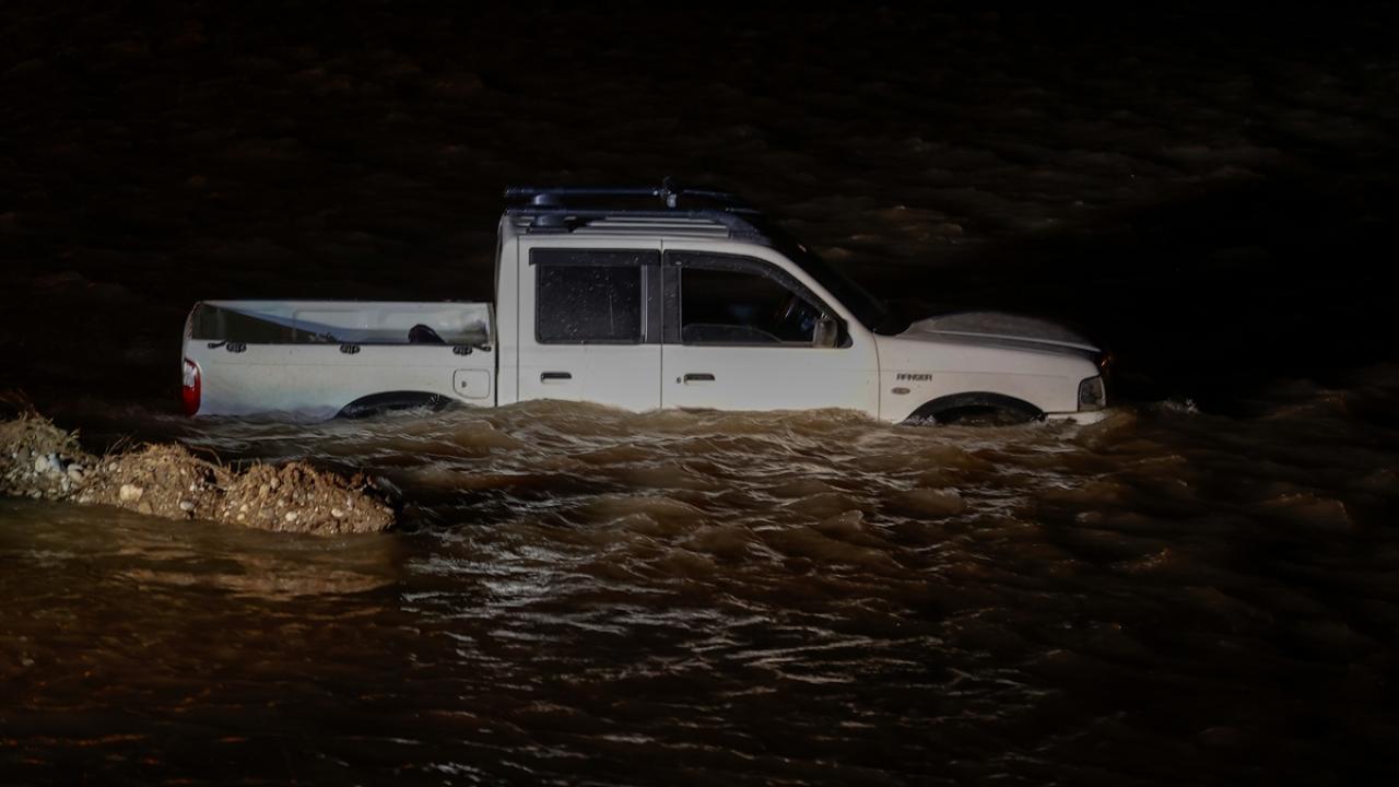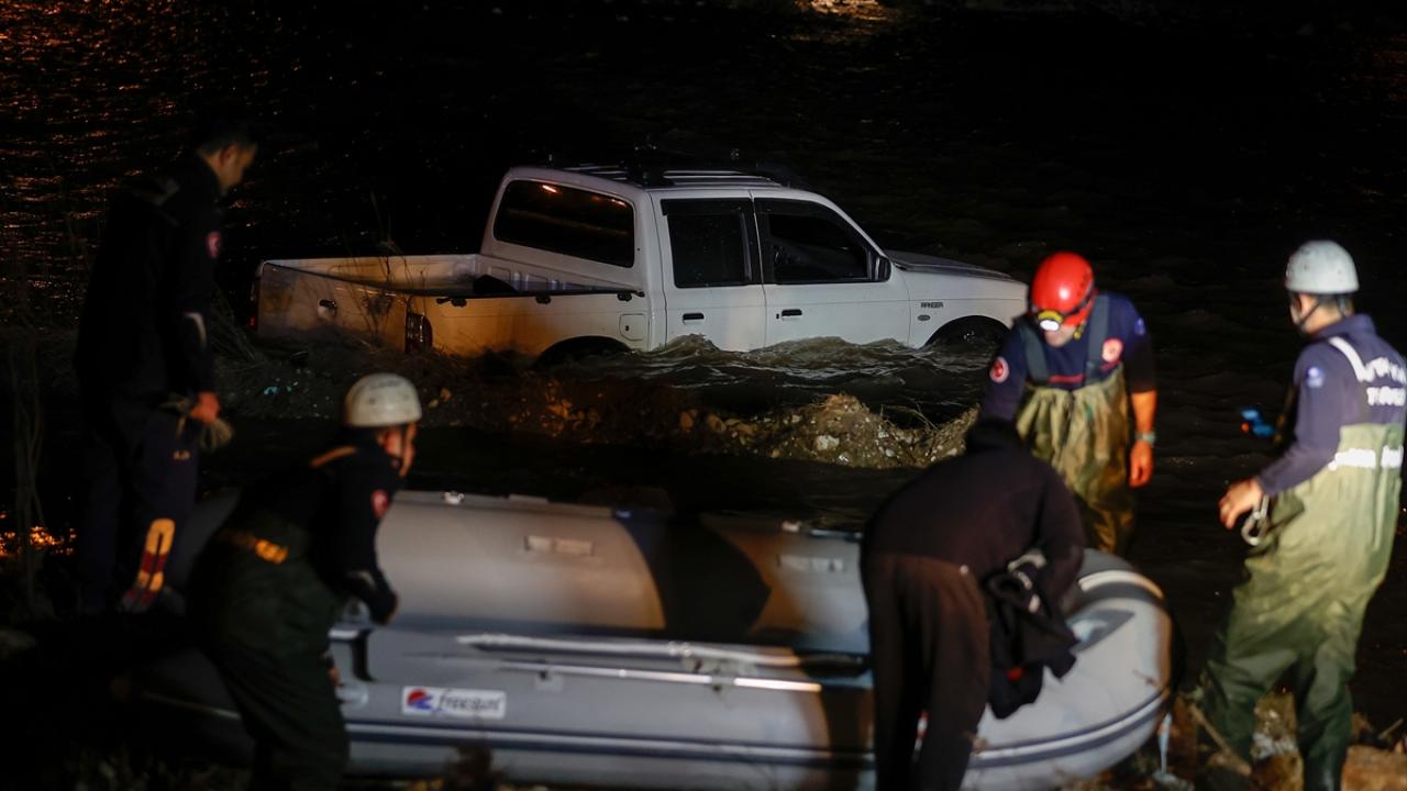 Sürücü aracı çıkarmaya çalışsa da başarılı olamadı. Akıntıyla kapılan ve kıyıdan 10 metre uzaklaşan kamyonet, bir süre sonra zemine çakıldı.