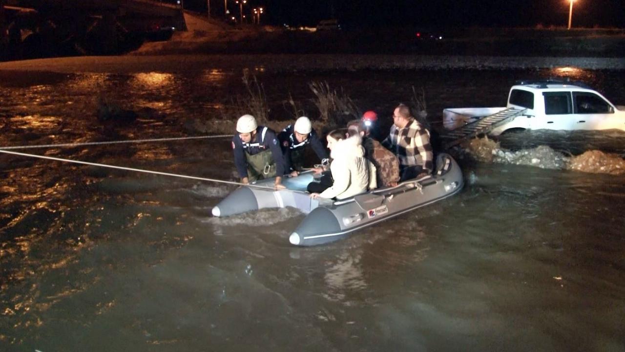 Akıntının ve derinliğin arttığı noktada 3 kişi bot yardımıyla kıyıya çıkarıldı.