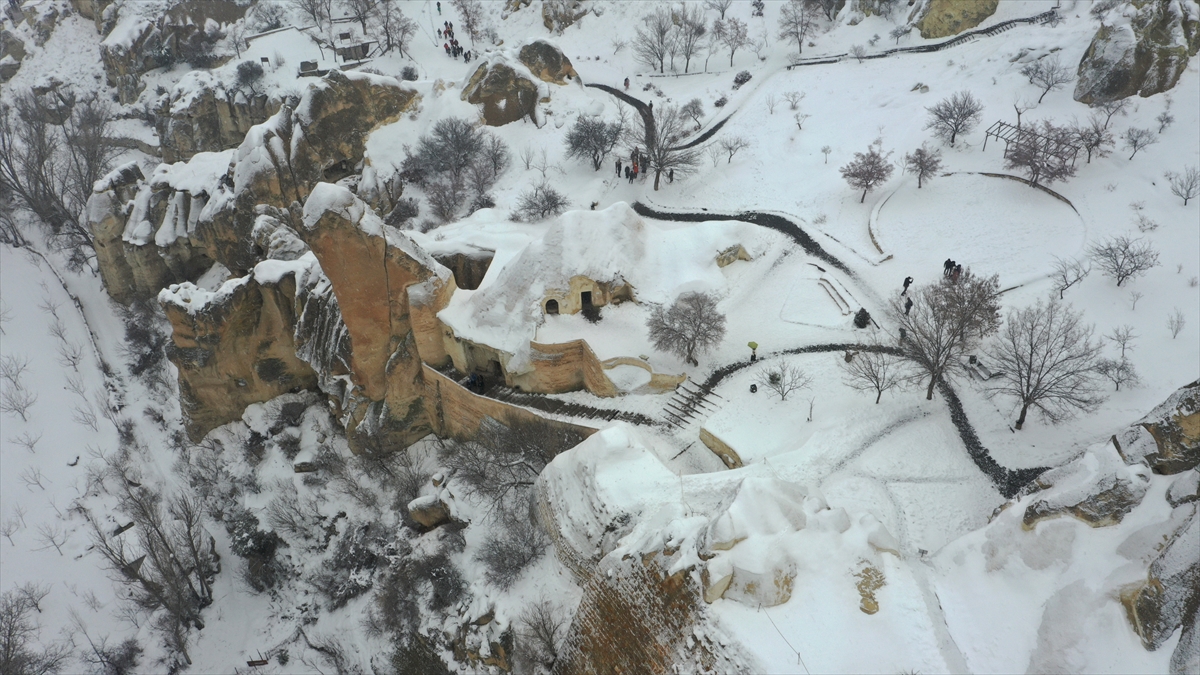 Karla kaplı Kapadokya`da yerli ve yabancı konuklar Kılıçlar, Güvercinlik, Güllüdere, Aşk ve Zemi vadilerine ilgi gösterdi.