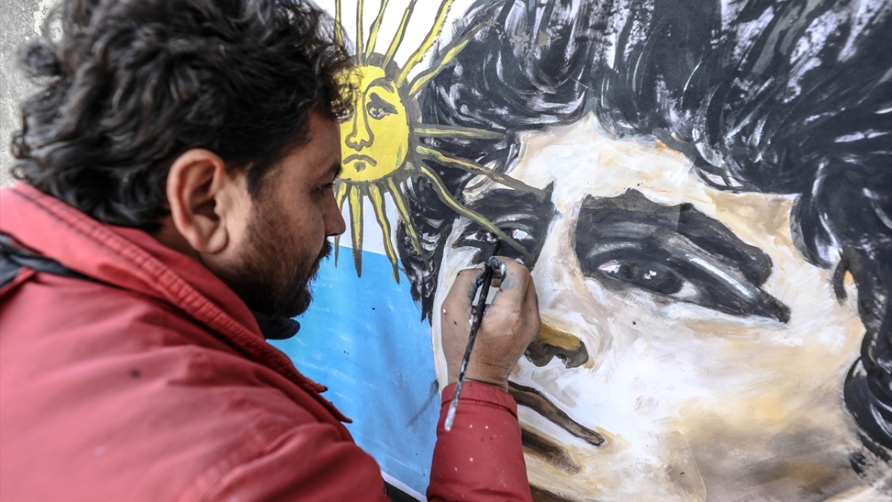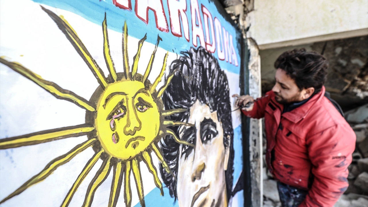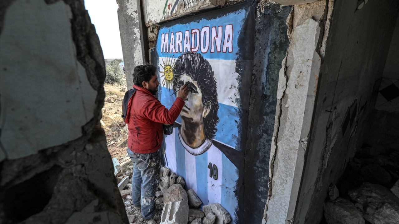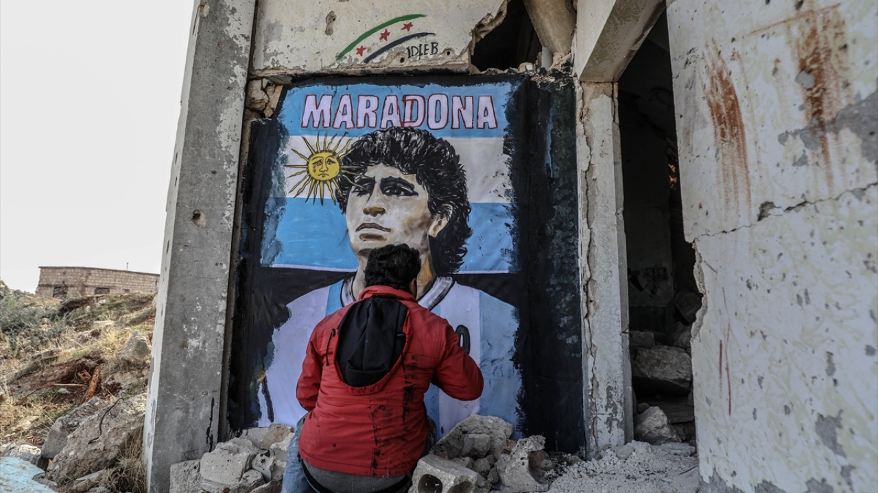 Hayatını kaybeden Arjantinli efsane futbolcu Diego Armando Maradona, İdlib'de bir evin duvarına resmedildi.