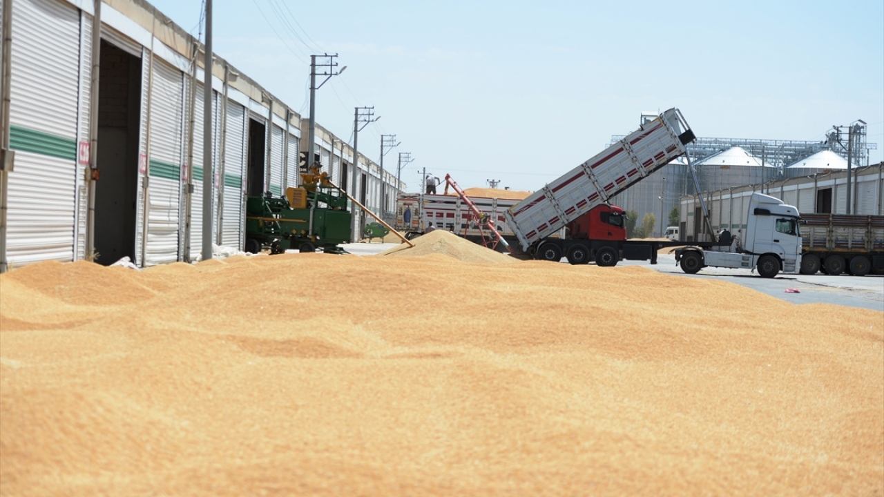 Kamyonlarla Kızıltepe Hububat Ticaret Merkezi`ne getirilen buğdayın kilogramını çeşidine göre 1,70 ile 1,85 lira arasında fiyatla satan üreticinin yüzü yüksek verim ve fiyat dolayısıyla güldü.