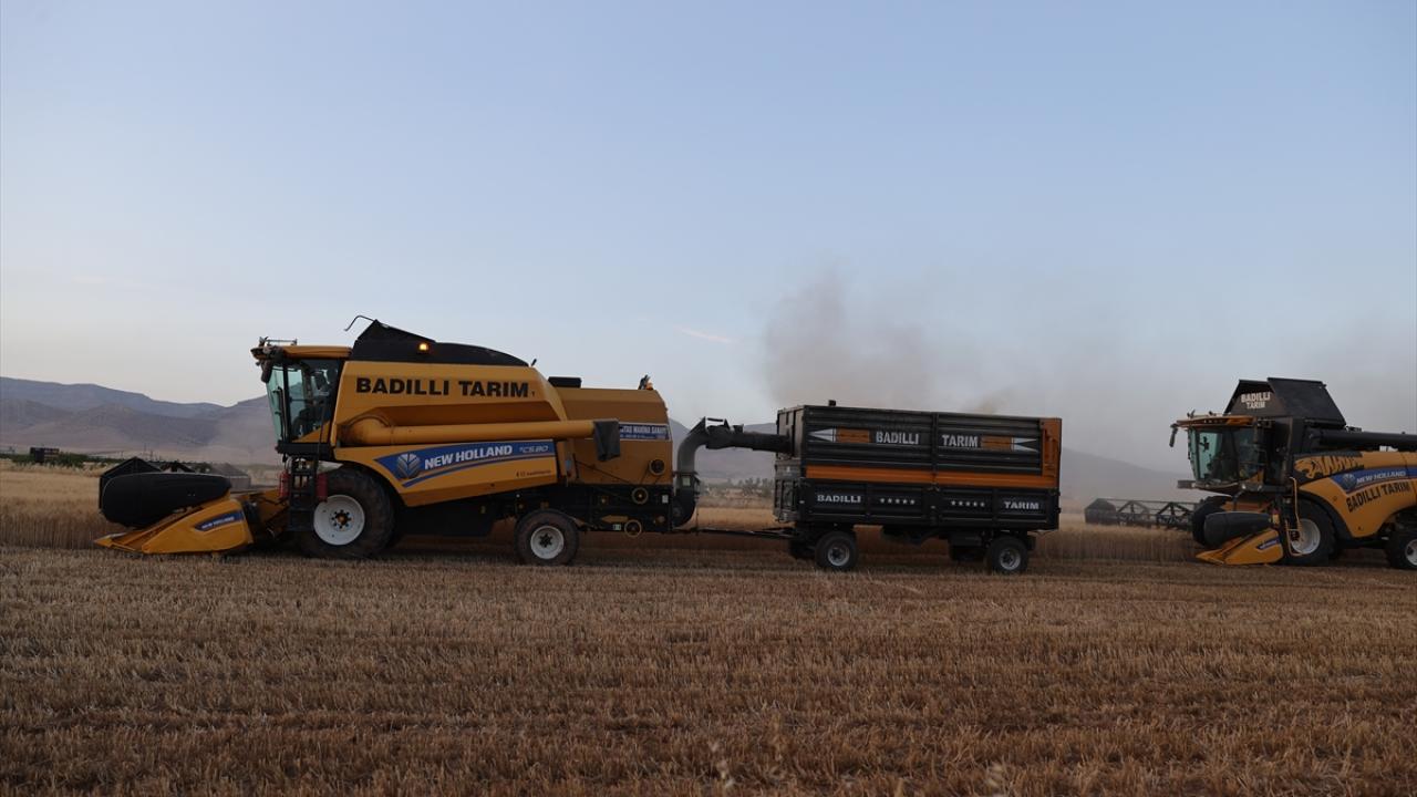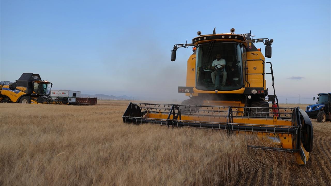 Olası yangınlara karşı ürünlerini bir an önce toplamak isteyen üreticiler, Mardin Ovası`ndaki tarlalarda çevre illerden de getirilen biçerdöverlerle 24 saat hasat yapıyor.