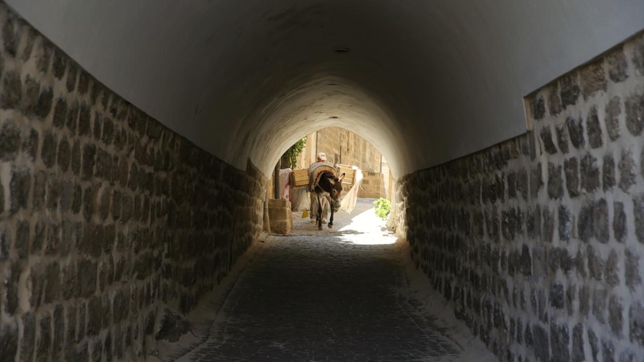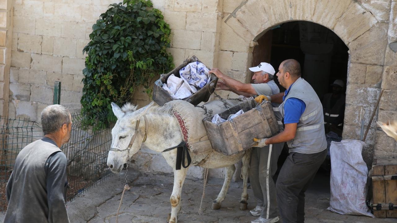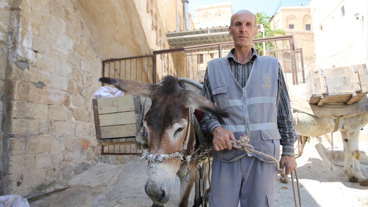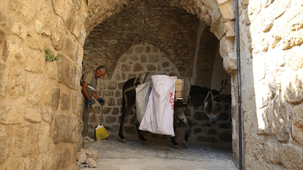 Artuklu Belediyesinde sit alanının temizliğinden sorumlu Mehmet Turgay, dar ve merdivenli sokaklardaki çöplerin eşekler yardımıyla toplandığını söyledi.