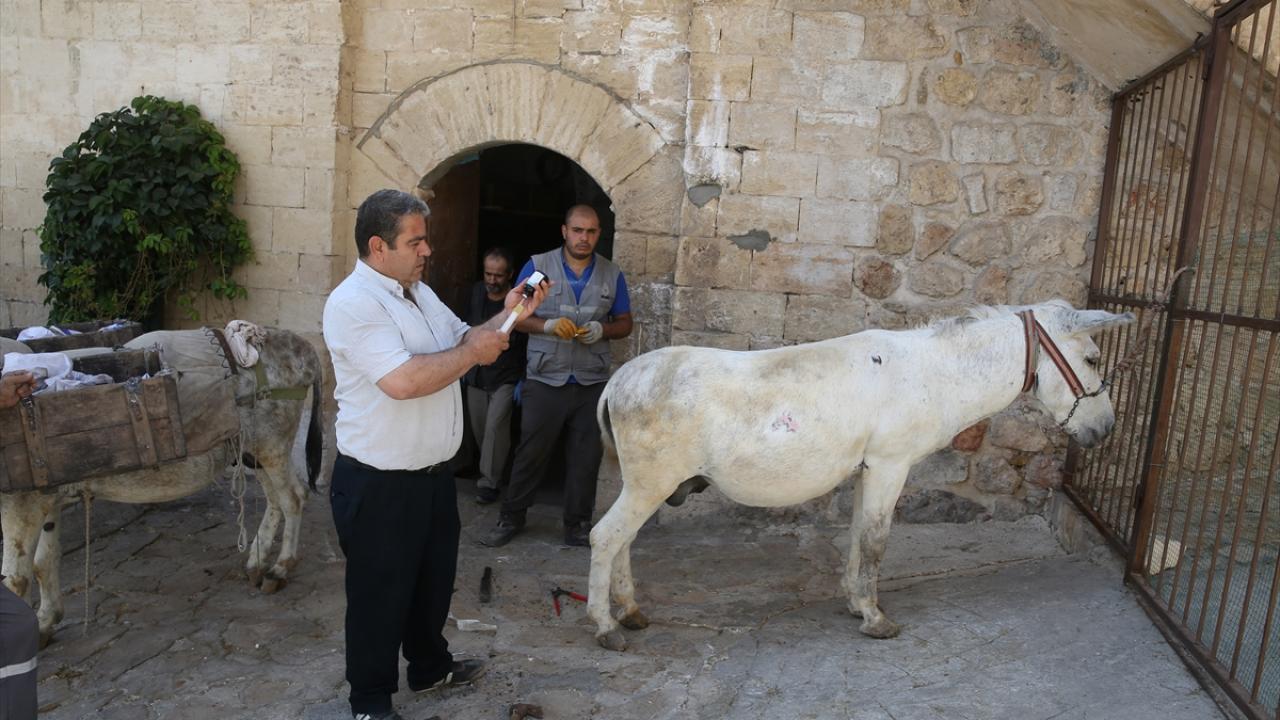 Artuklu Belediyesi görevlileri, her sabah eşeklerin konakladığı Teker Mahallesi`ndeki "tavla" olarak tabir edilen alana gelerek gerekli hazırlıkları tamamlıyor.
