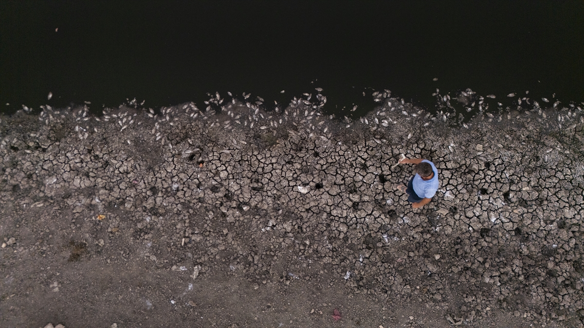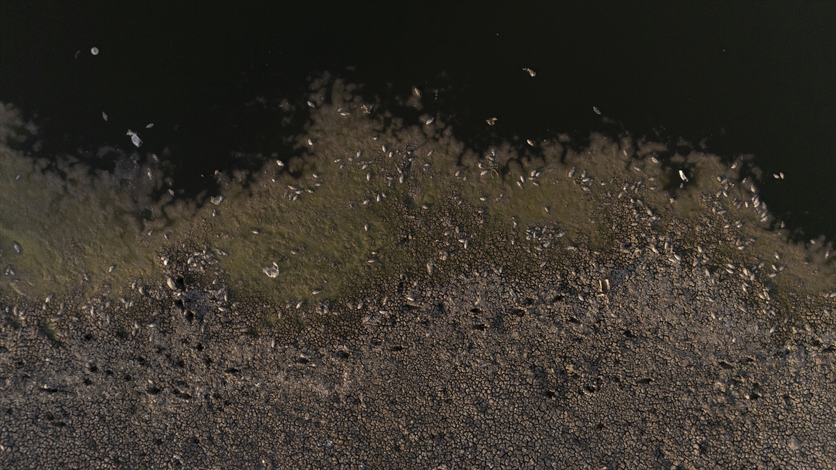 Sıcaklıkların mevsim normallerinin üzerinde seyretmesiyle birlikte bölgedeki çok sayıda gölet tamamen kururken, su seviyesi düşen Şanlı Mahallesi göletinde binlerce balık telef oldu.