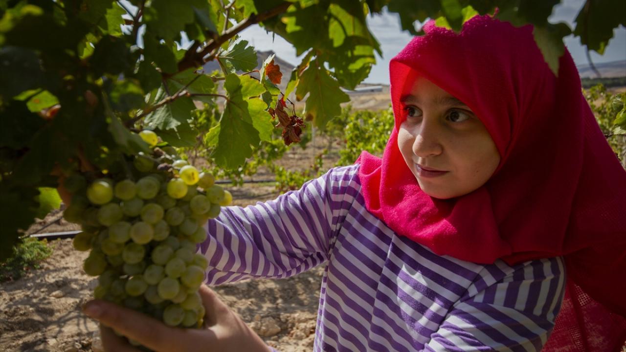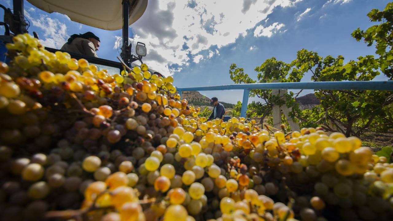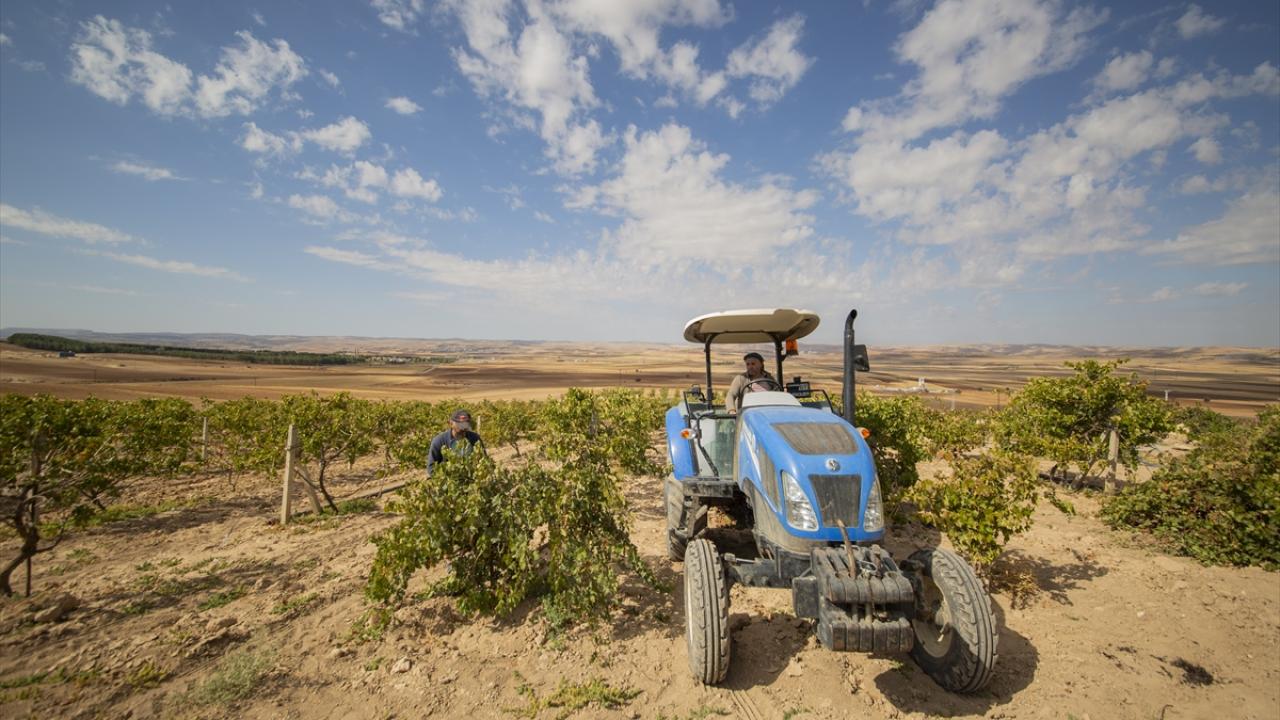 Mardin’in Mazıdağı ilçesinde geç olgunlaşan ve kendine özgü aromasıyla bilinen “mezrone” üzümünün hasadı sürüyor.