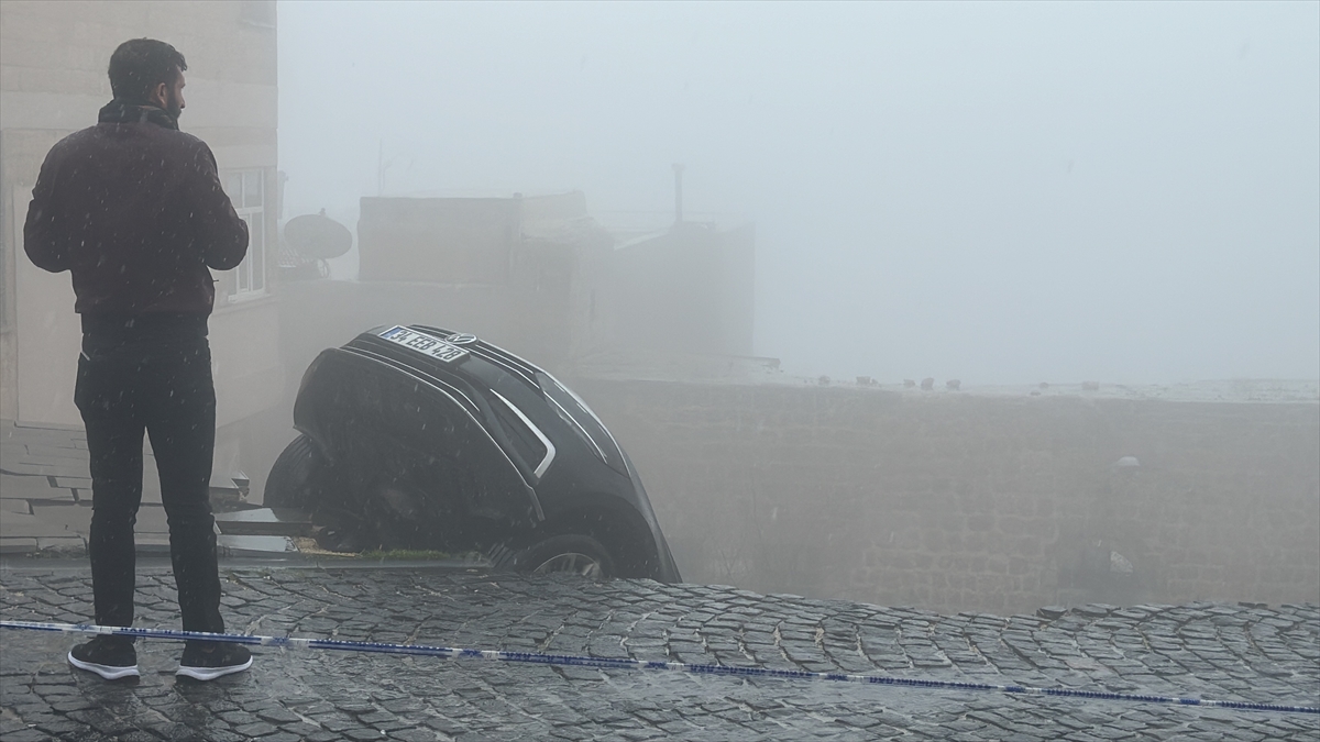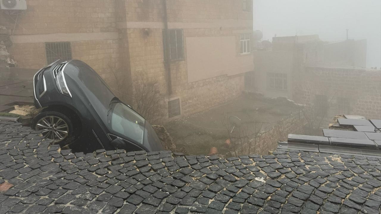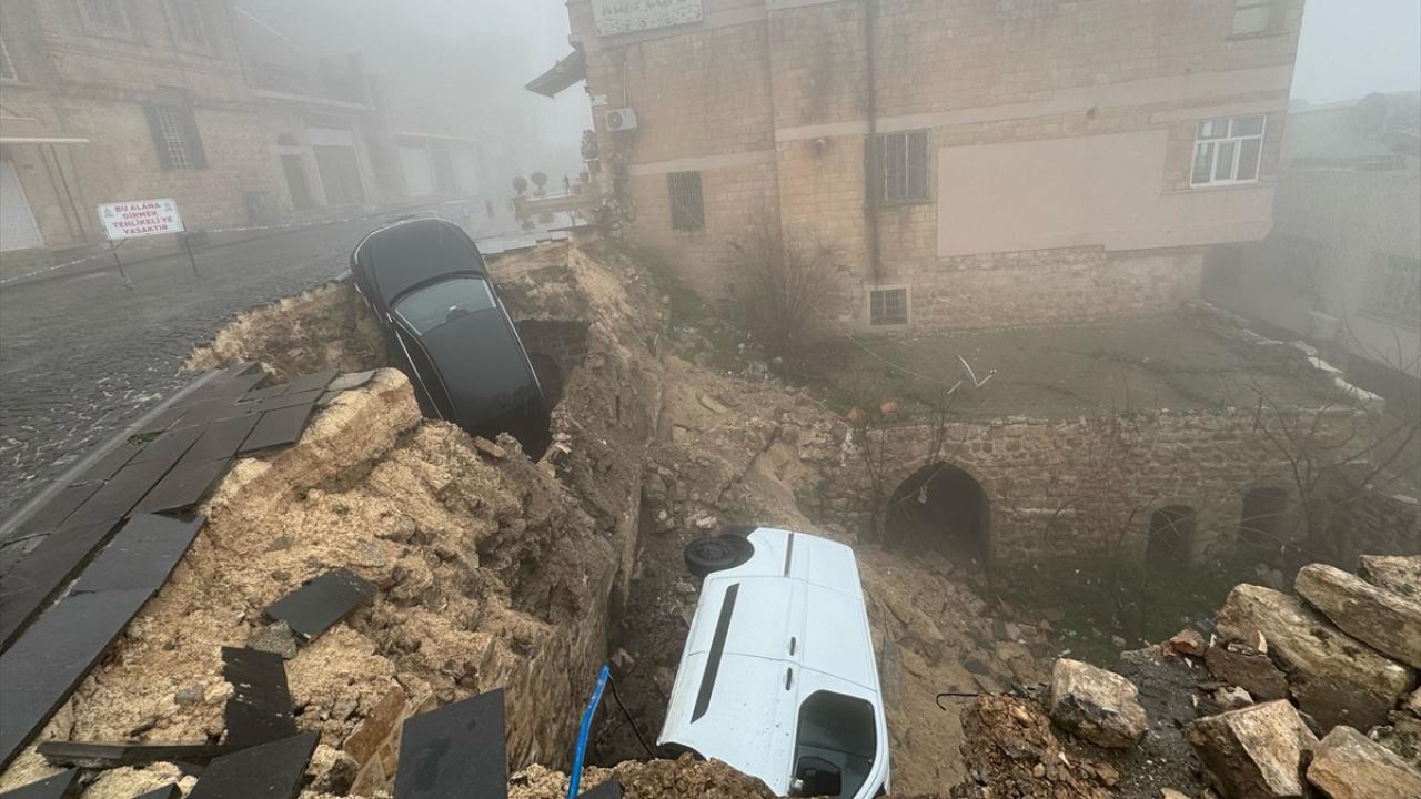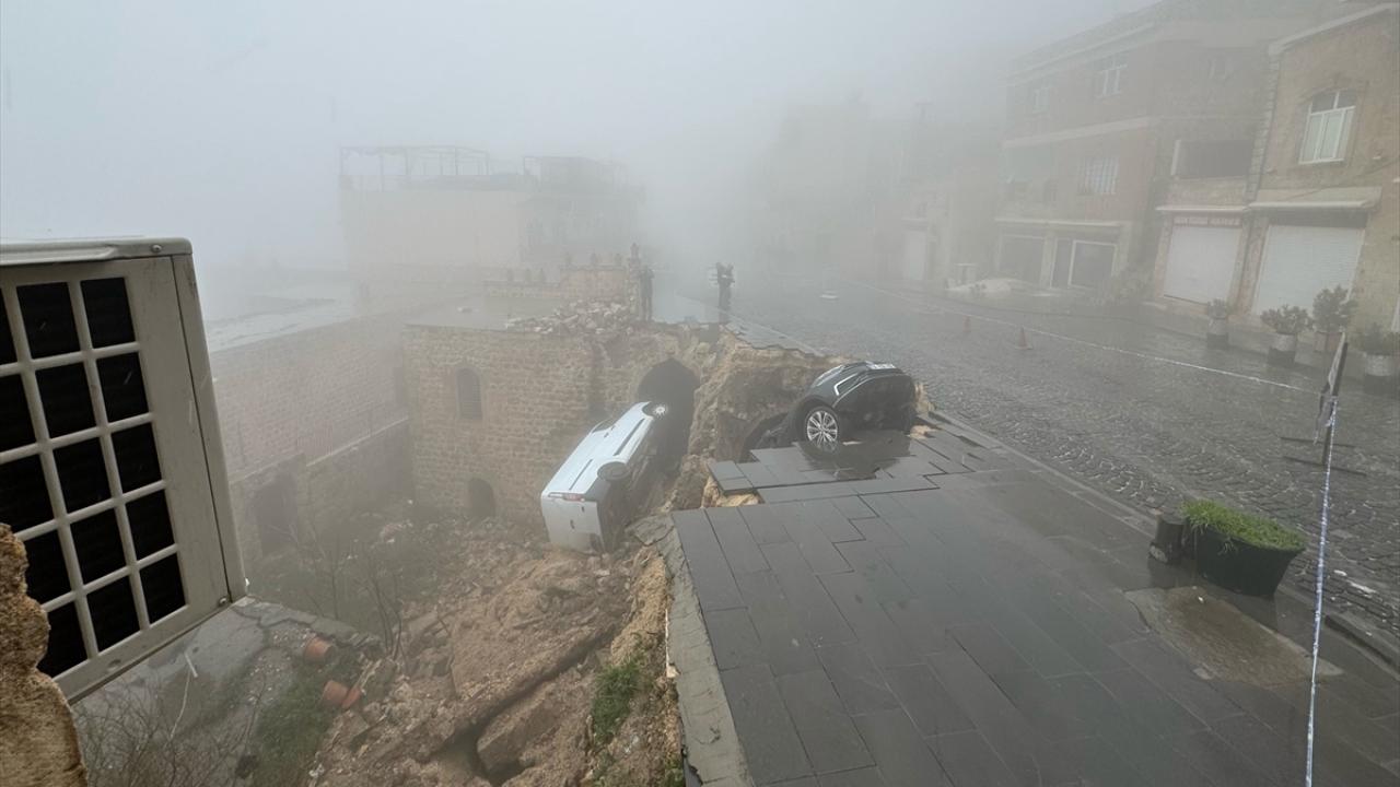 Mardin'in Artuklu ilçesinde sağanak nedeniyle çöken yoldaki 2 araçta hasar oluştu.