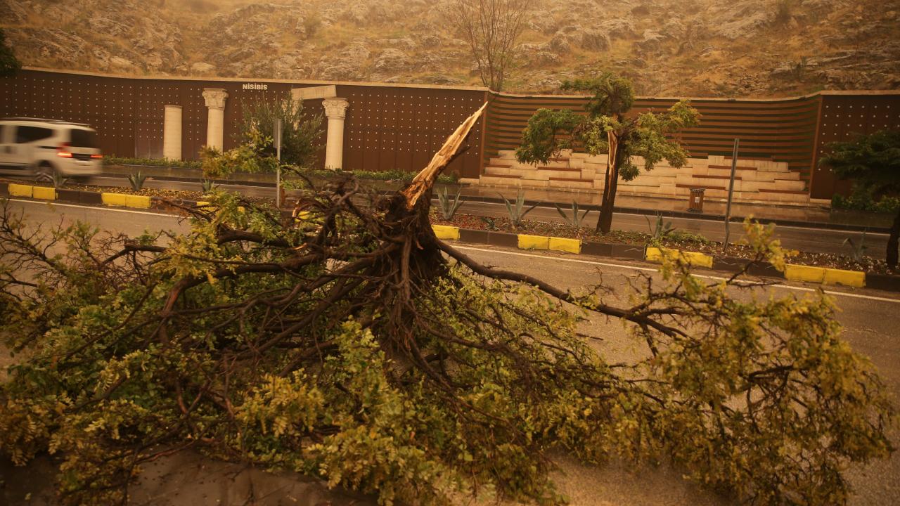 Bölgede zaman zaman yağmur da etkili olurken, fırtına bazı evlerin camlarının kırılmasına, yol kenarındaki ağaçların devrilmesine neden oldu.