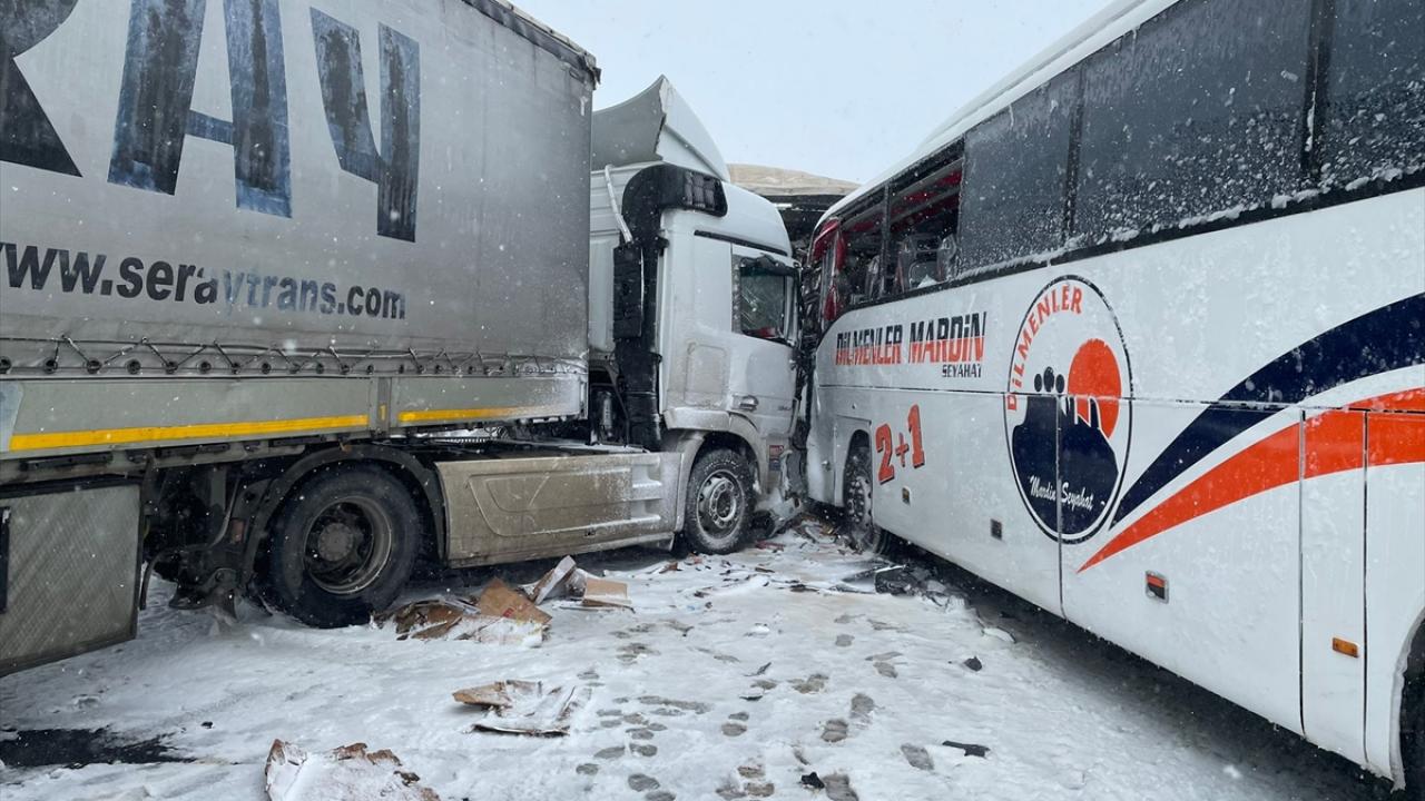 Mardin'de yoğun kar yağışı ve buzlanma zincirleme kazaya neden oldu. 8 aracın karıştığı trafik kazasında 3 kişi hayatını kaybetti, 12 kişi de yaralandı.