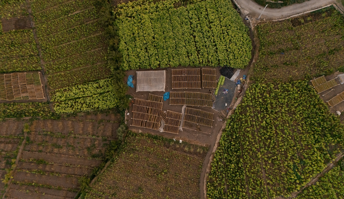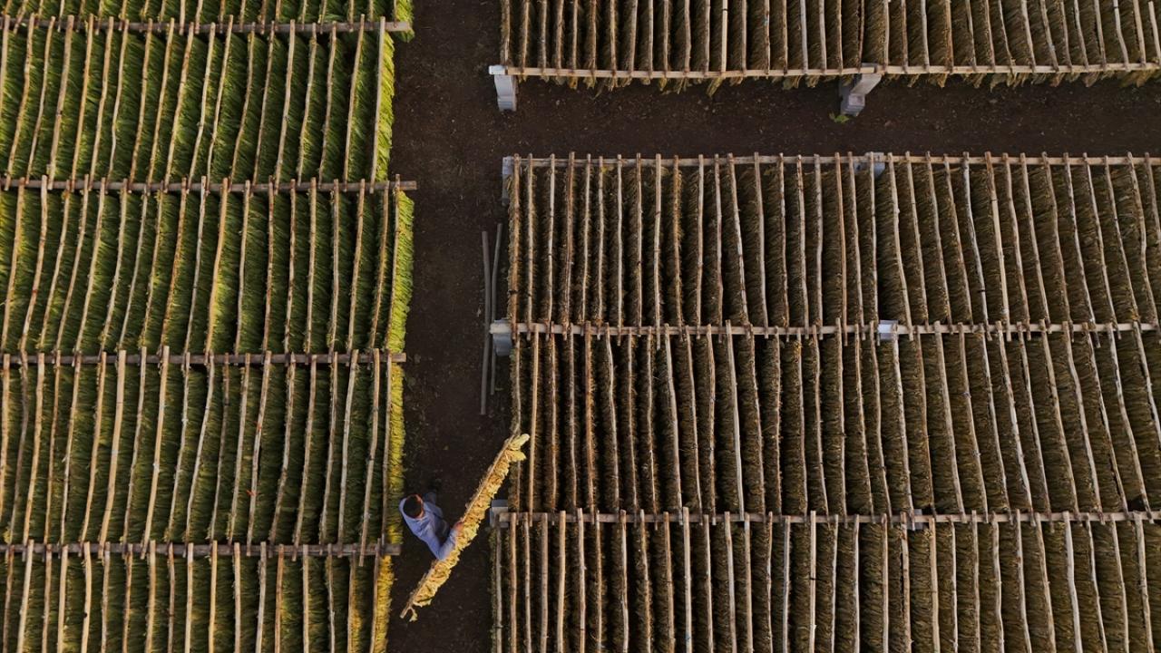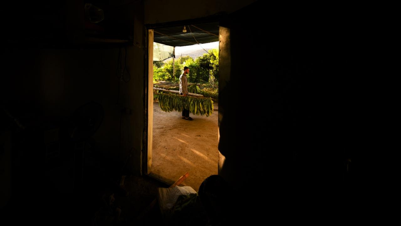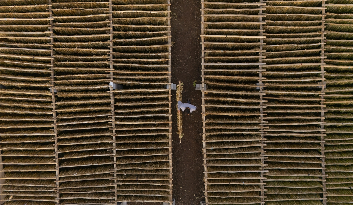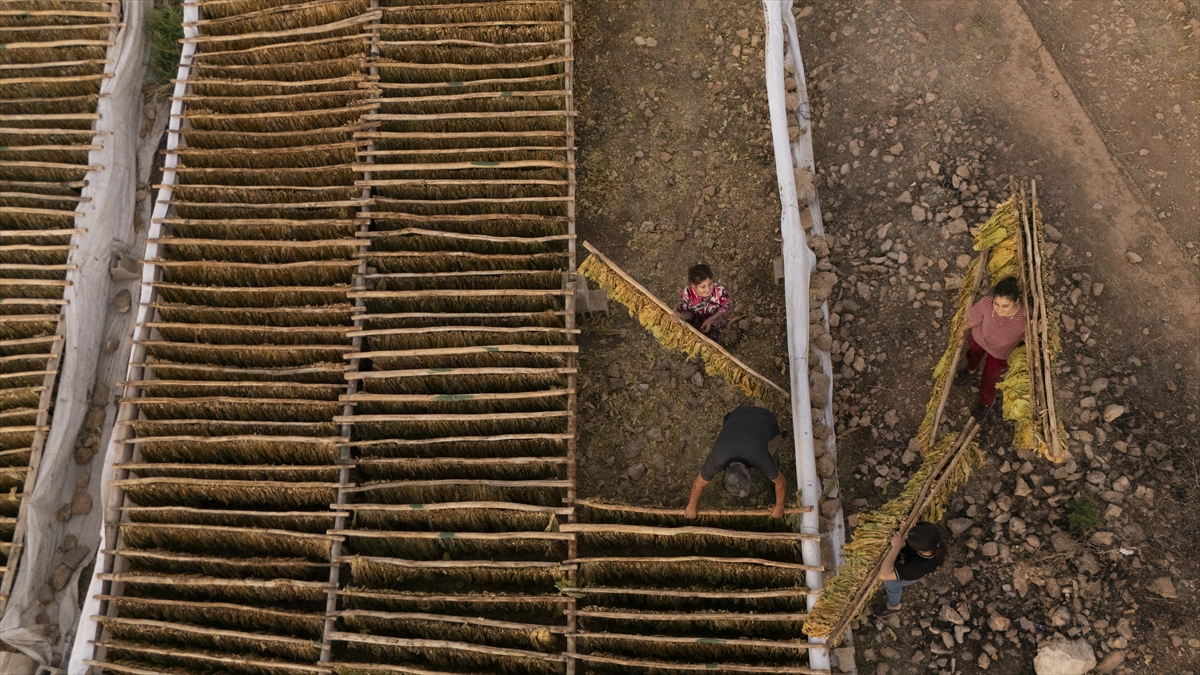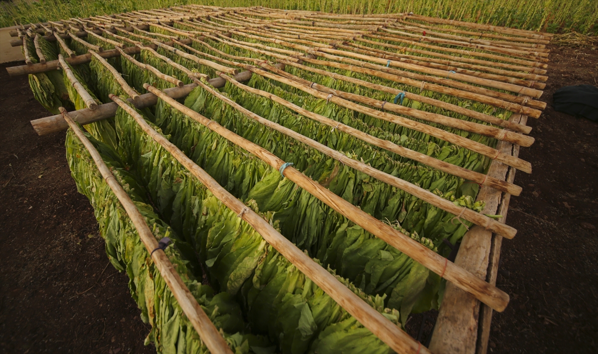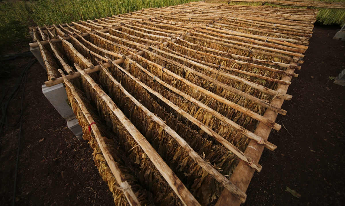 Yaprakların nemini koruması için zaman zaman suyla ıslatma işlemi yapılırken, kuruma sürecini tamamlayan tütünler daha sonra makinelerden geçirilerek işleniyor.