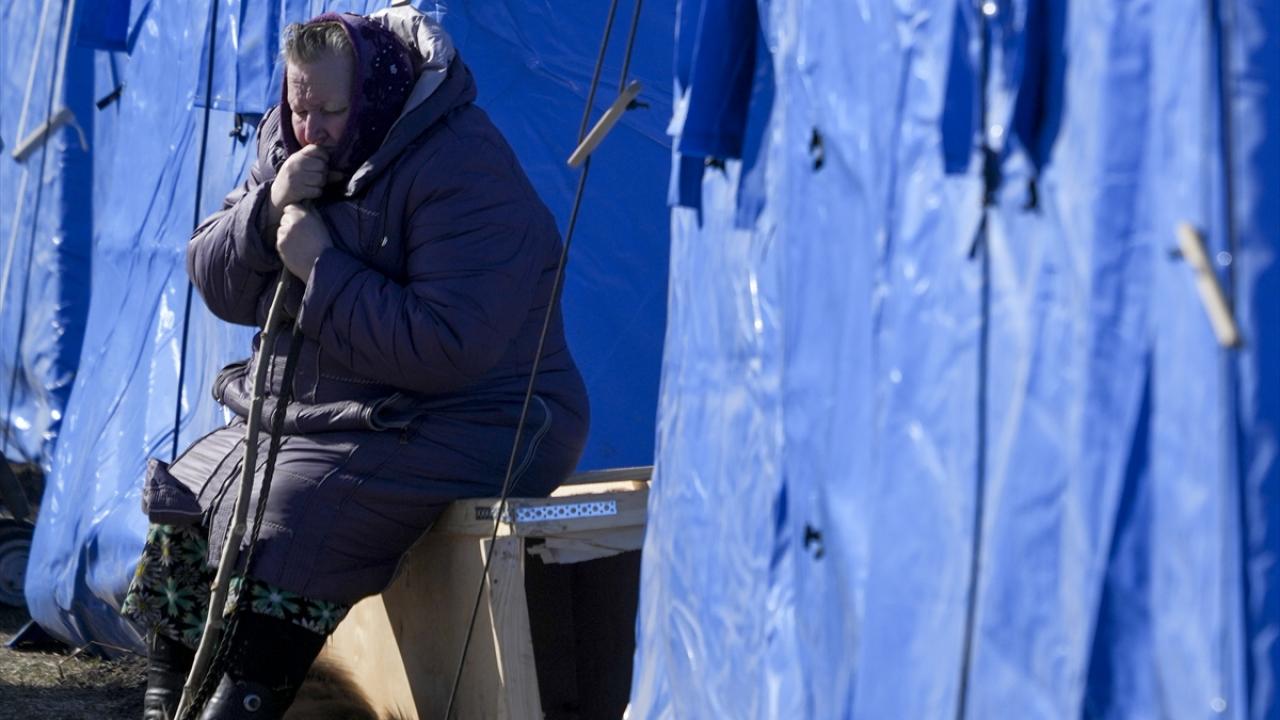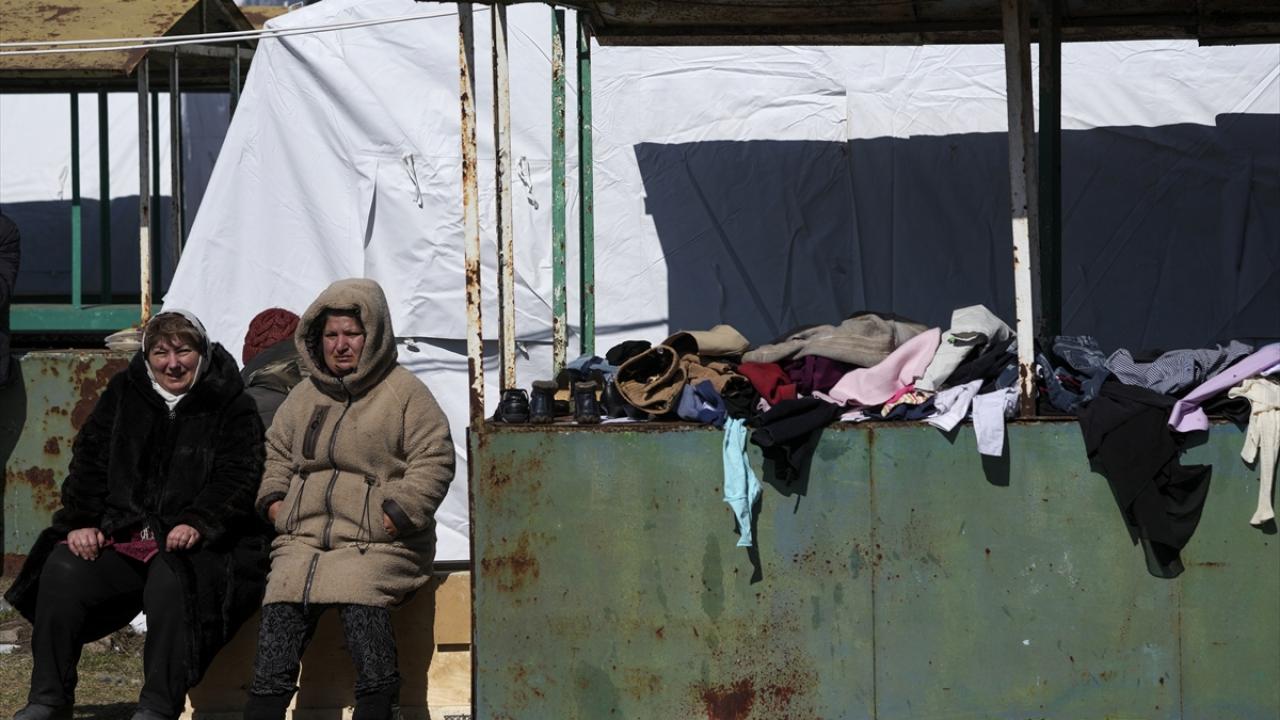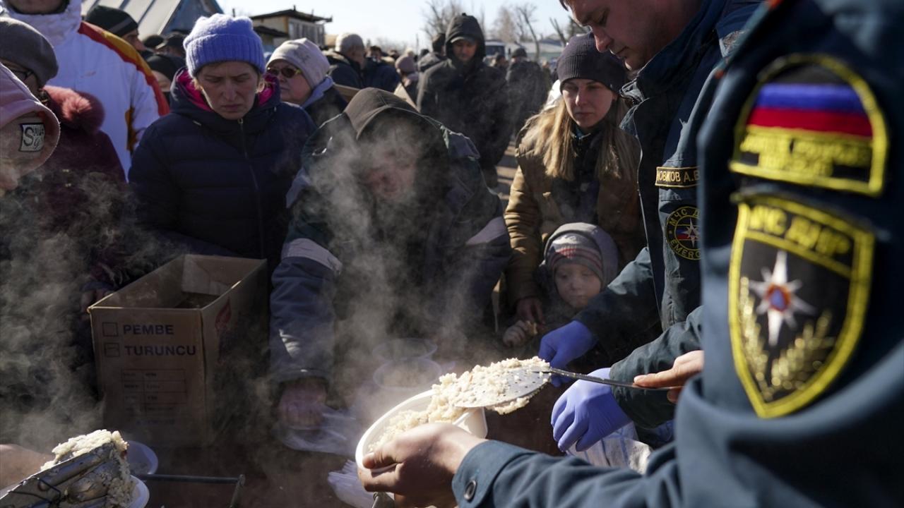 Rus askerlerinin ve ayrılıkçıların kuşattığı Ukrayna’nın Mariupol şehrinden tahliye edilen siviller, şehrin yakınlarındaki Bezymyenny bölgesine kurulan mülteci kampına yerleşti.