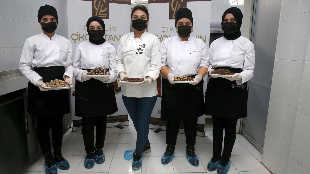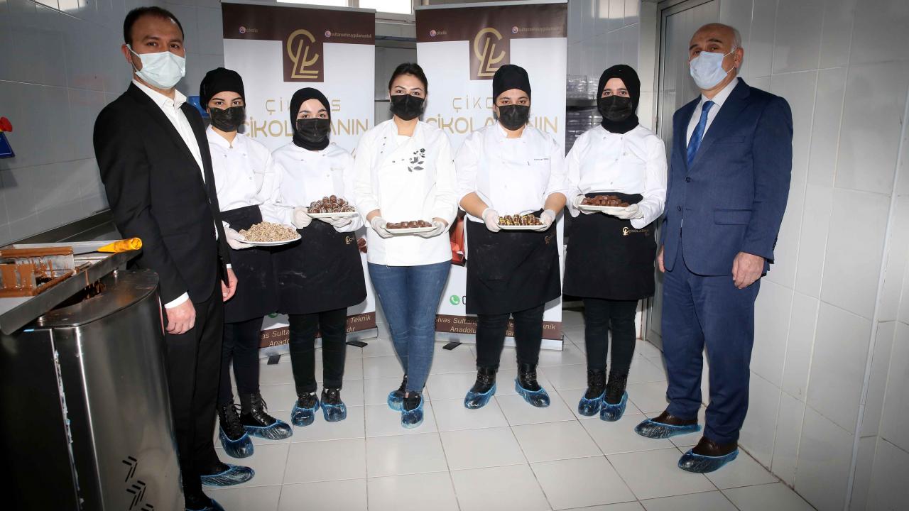 Sivas'ta bir lisede kurulan atölyede "Çikolis" markalı tescilli çikolatanın seri üretimini yapan öğrenciler, döner sermayeden aldıkları payla hem aile bütçesine katkıda bulunuyor hem de çikolata ustası olmak için mesai harcıyor.