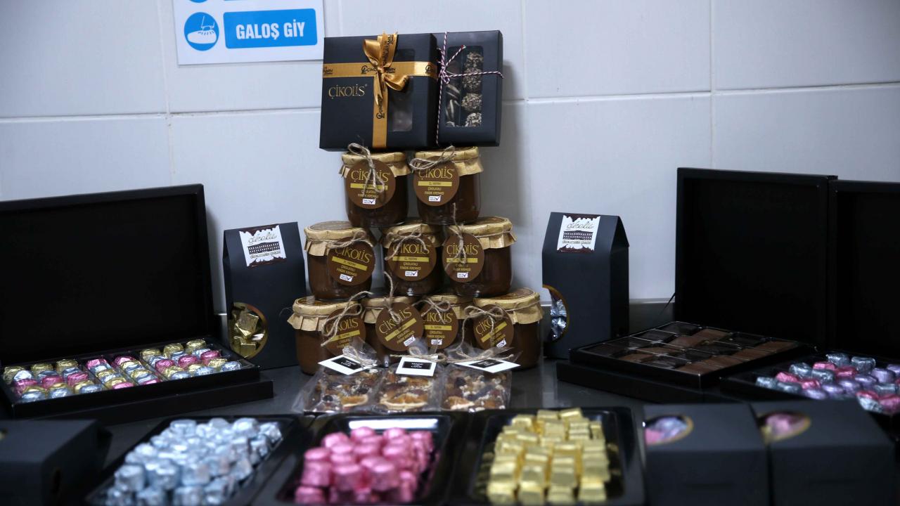 Atölyede 2020 yılında marka tescili alınarak kısıtlı imkanlarla üretimine başlanan "Çikolis" markalı çikolataların seri üretimi yapılıyor.