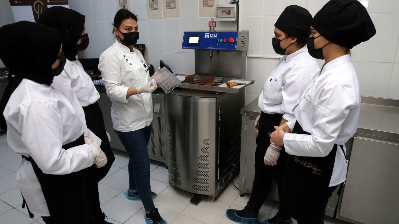 Çikolatanın kullanım ömrünün uzatılmasından paketlenmesine kadar her türlü bilgiyi öğrettiklerini belirten Mıdık, "Şu an çikolata atölyemizde 10 öğrencimiz var ama sipariş ve üretim arttıkça bu sayı değişecektir." ifadelerini kullandı.