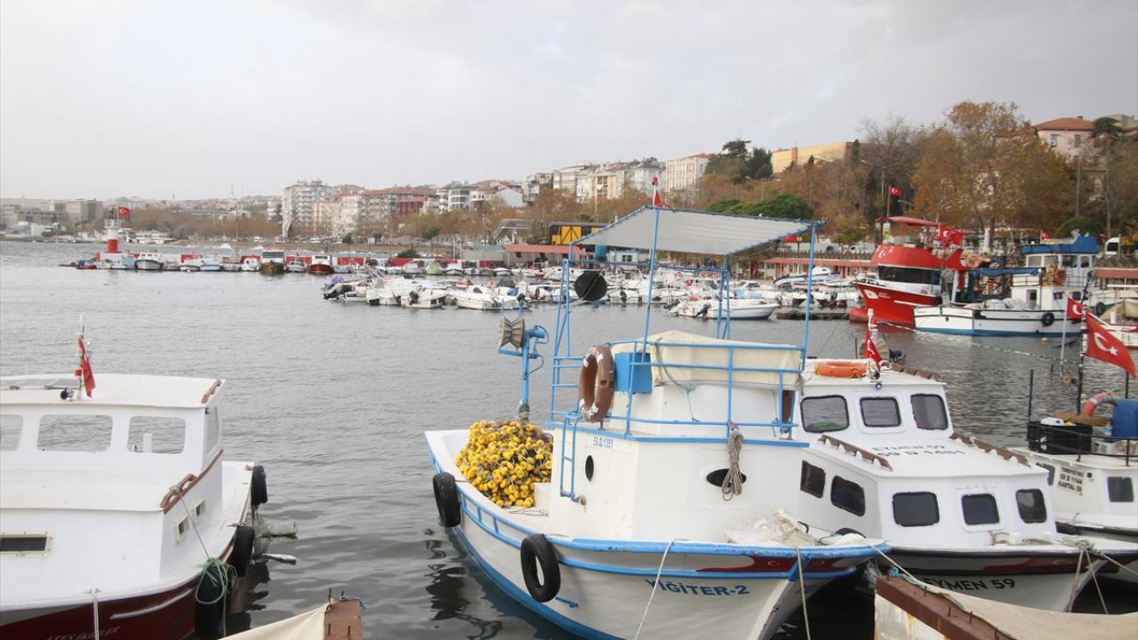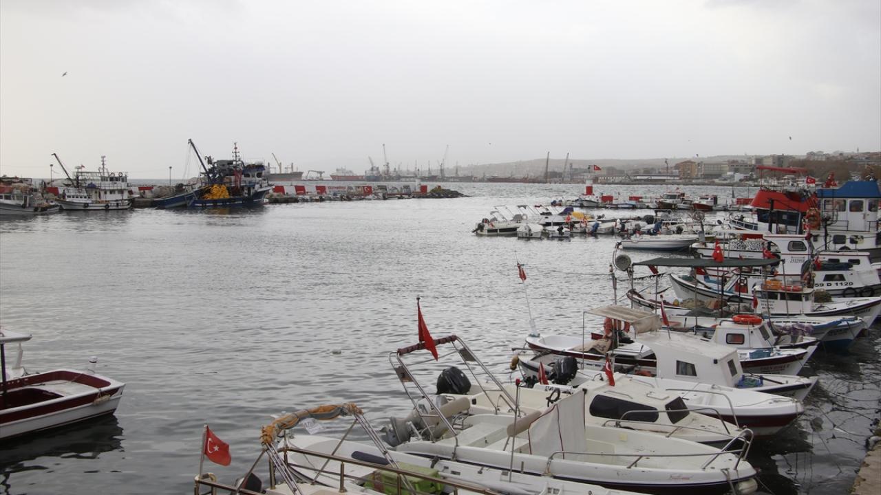 Rüzgar nedeniyle denize açılamayan balıkçılar, limanda bekliyor, ağlarını onarıyor.