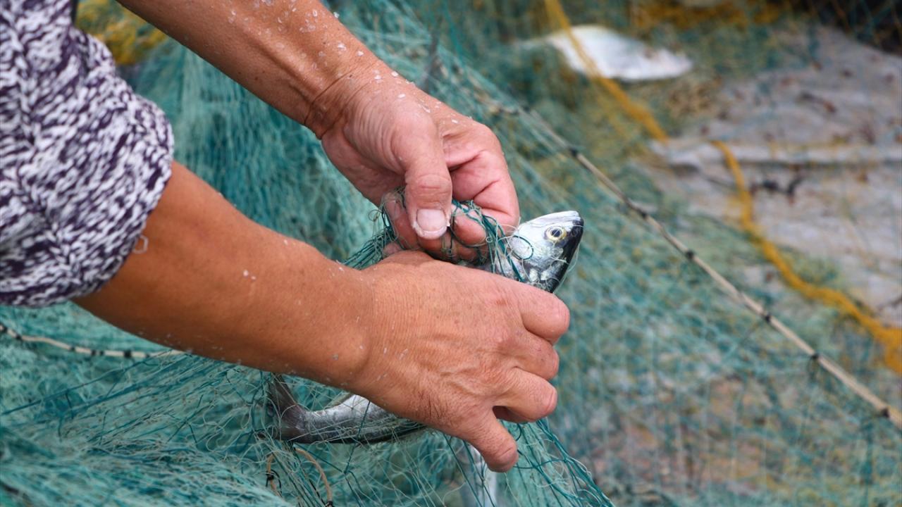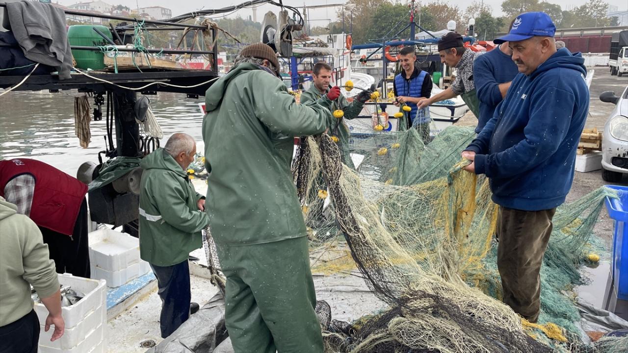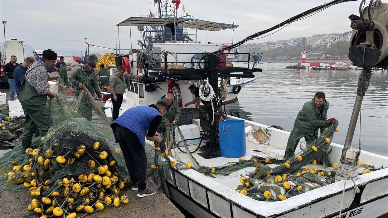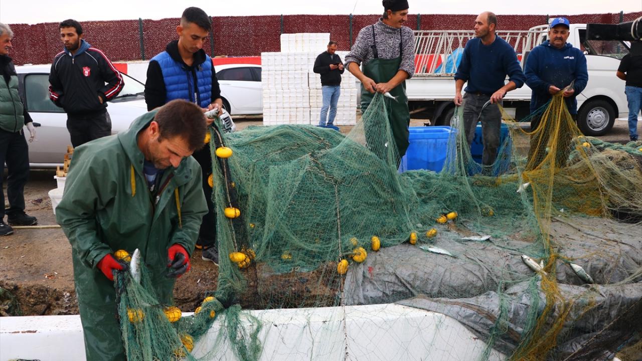 Marmara Denizi'nde avlanmaya devam eden Tekirdağlı balıkçılar limana lüfer dolu ağlarla dönüyor. Balıkçılar lüferleri ağlardan çıkartıp satışa hazır hale getiriyor.