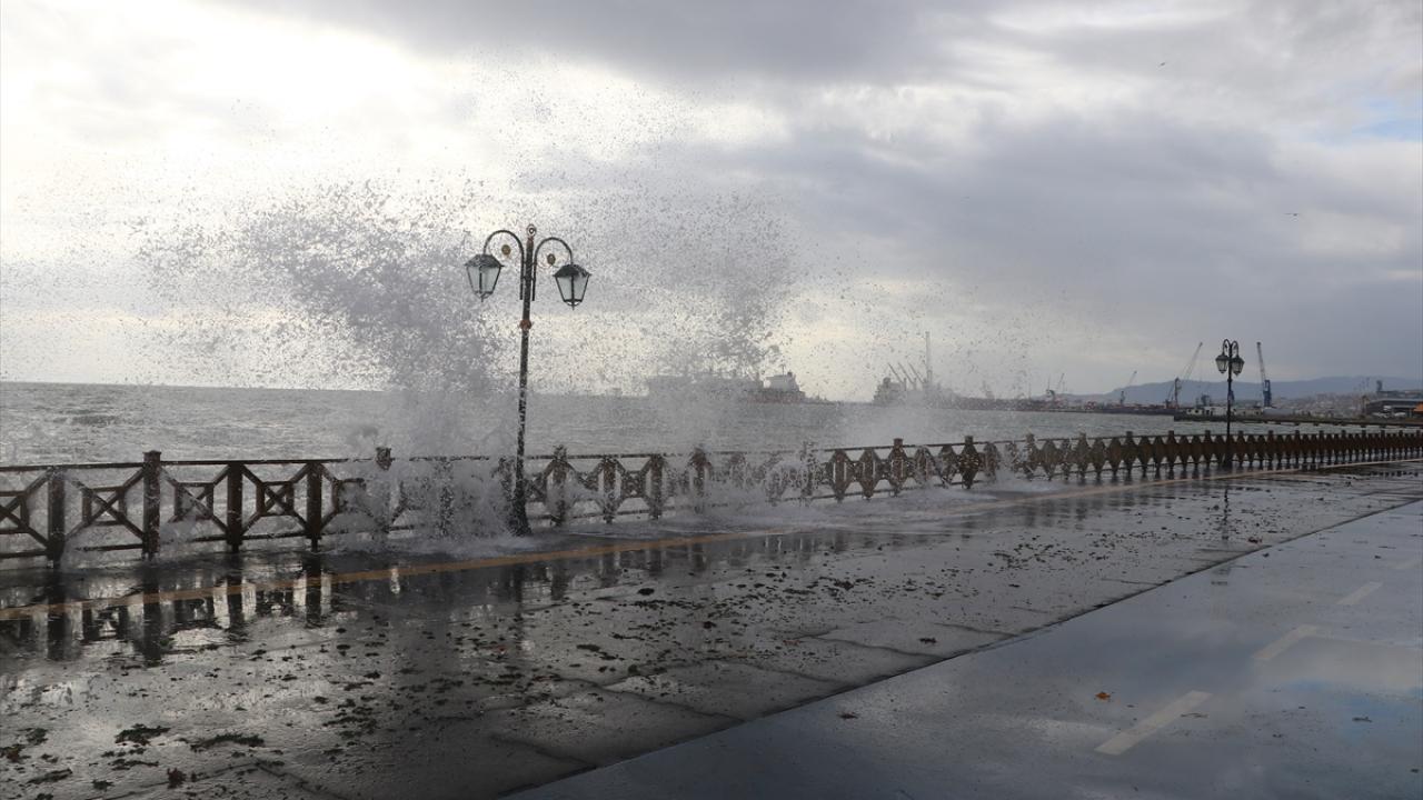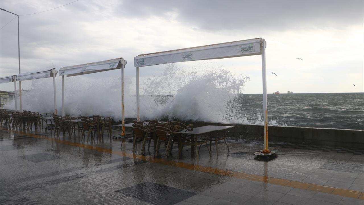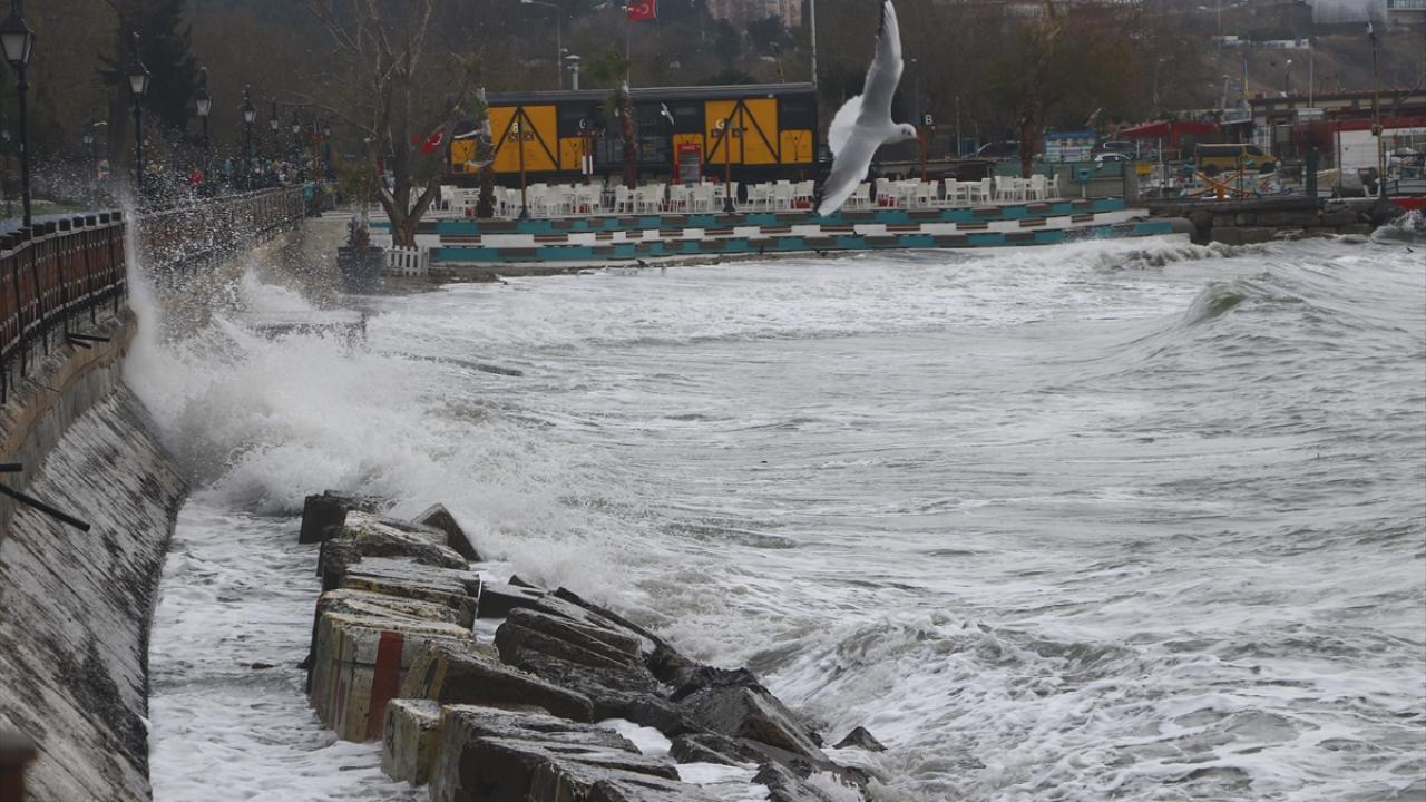 Şiddetli rüzgar nedeniyle balıkçılar bugün denize açılamadı, dalgalar zaman zaman sahil şeridindeki bariyerleri aştı.
