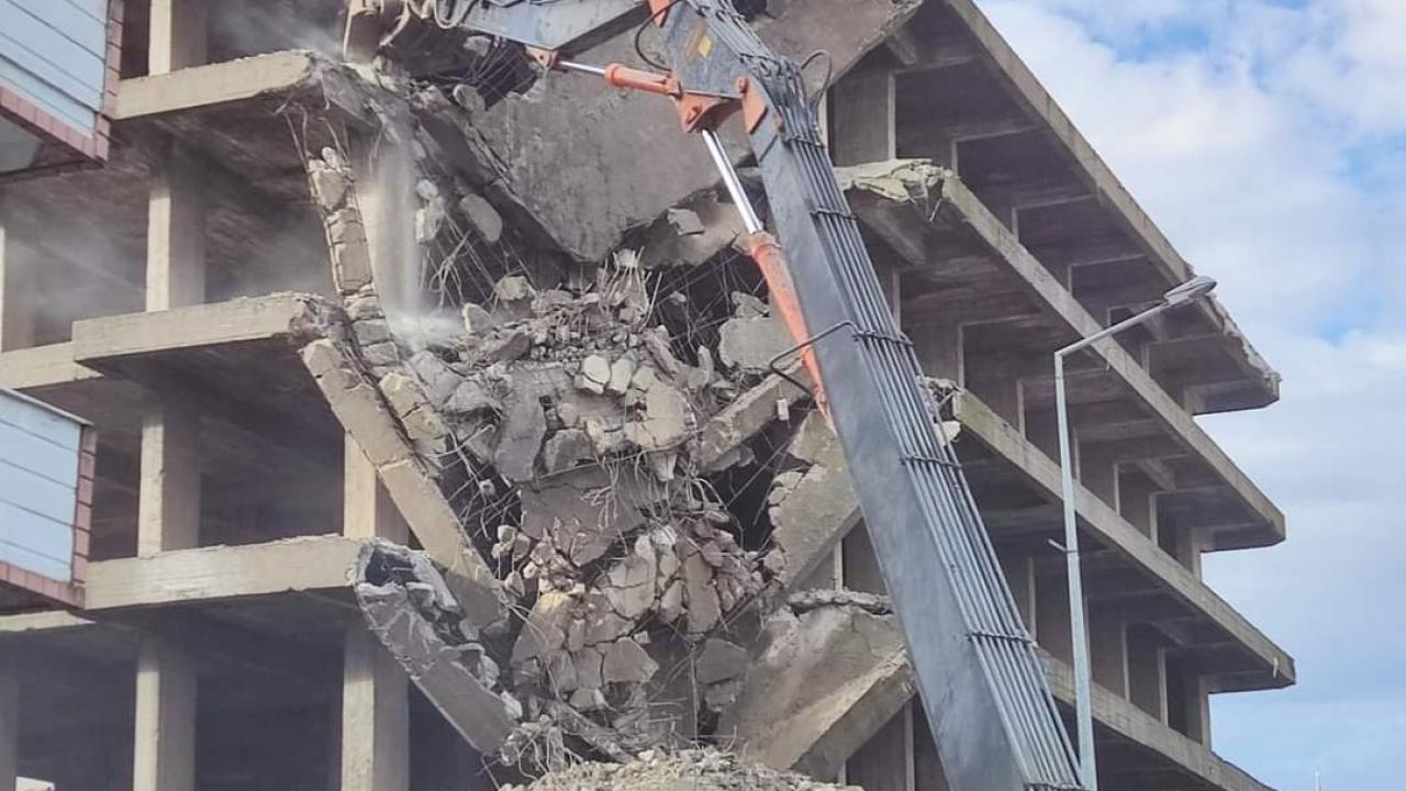 Kocaeli'nin Gölcük ilçesinde 17 Ağustos 1999 depreminde hasar gören 6 katlı inşaatın, sahibinden alınan izinle 22 yıl sonra yıkımına başlandı. Binanın yıkımı bir hafta içerisinde tamamlanacak.