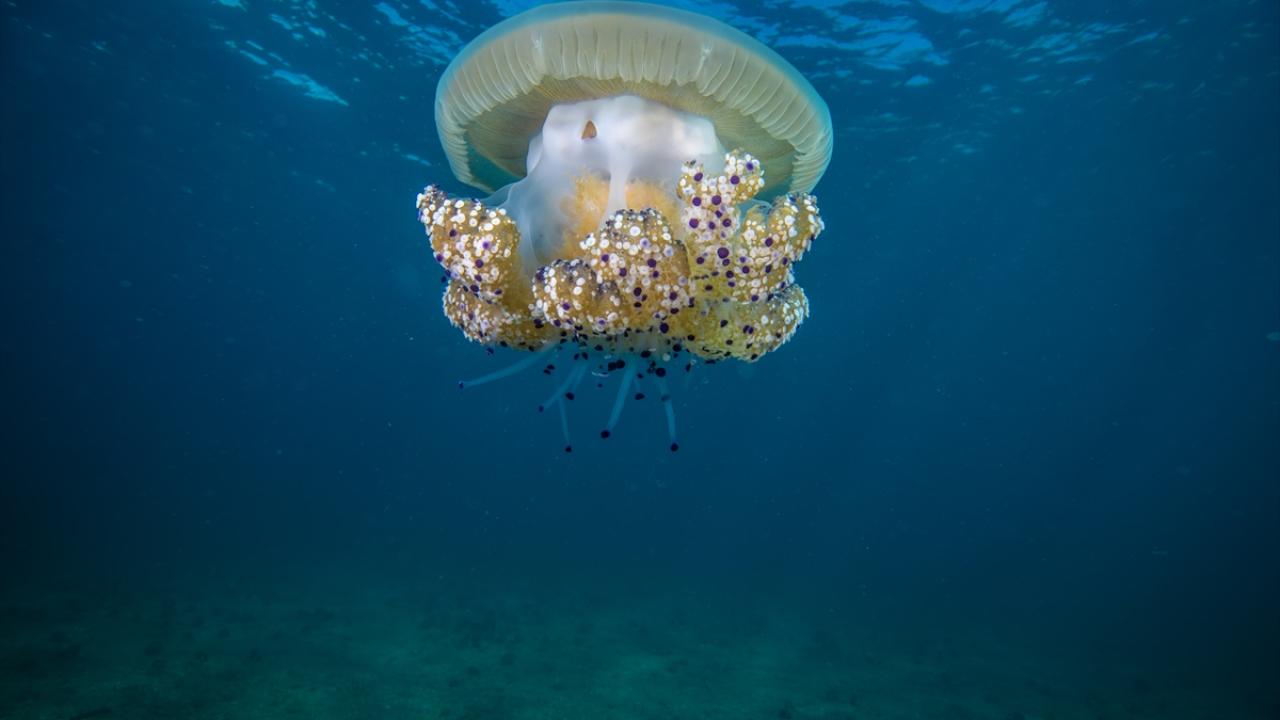 Projenin dalışı esnasında pinaların üzerinde Marmara Denizi`nde ilk kez 2022 yılında Erdek Körfezi`nde görüldüğü bildirilen, bilimsel adı "Cotylorhiza Tuberculata" olan "maviş denizanası" da görüntülendi. Oldukça renkli ve zehirsiz olan canlı, çoğu zaman şemsiyesi altında yavru balıkların dolaşmasıyla da biliniyor.