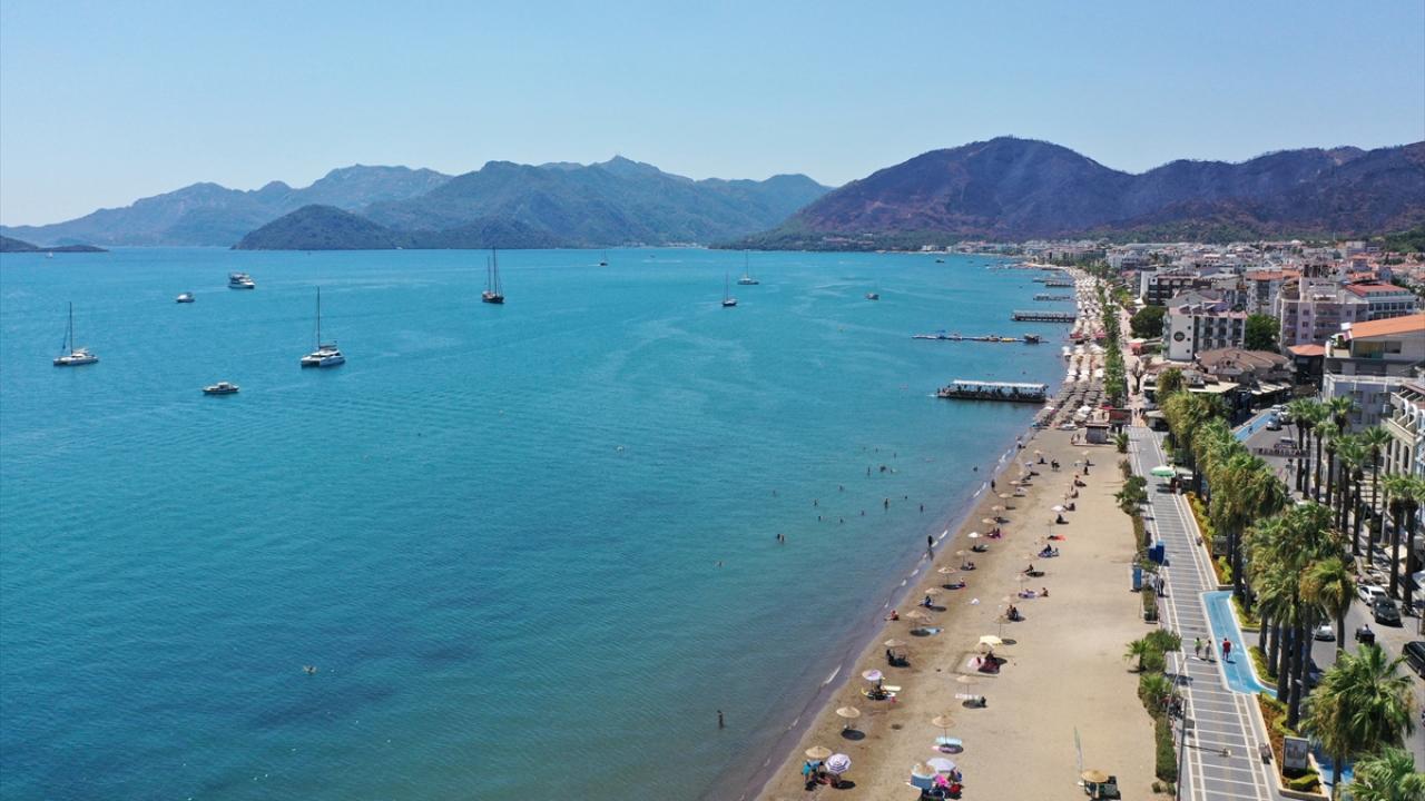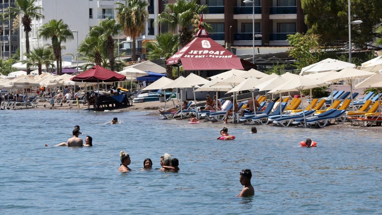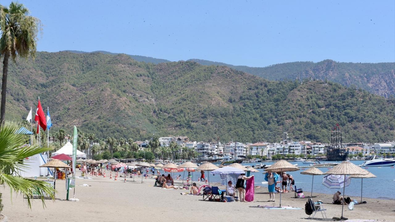 Hava sıcaklığının 39, deniz suyu sıcaklığının ise 27 derece ölçüldüğü ilçede vatandaşlar ve tatilciler, Uzunyalı, İçmeler, Marmaris Belediyesi Halk Plajı ve İçmeler Halk Plajı`nda güneşlenip, denize girdi.