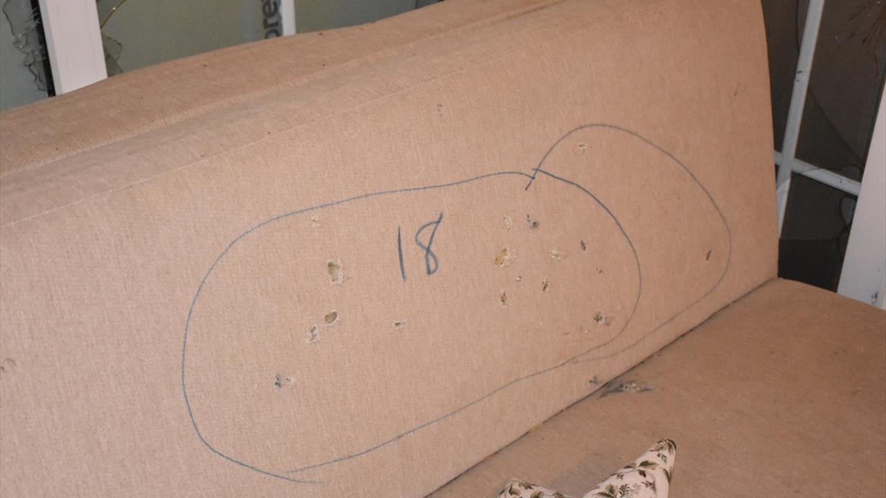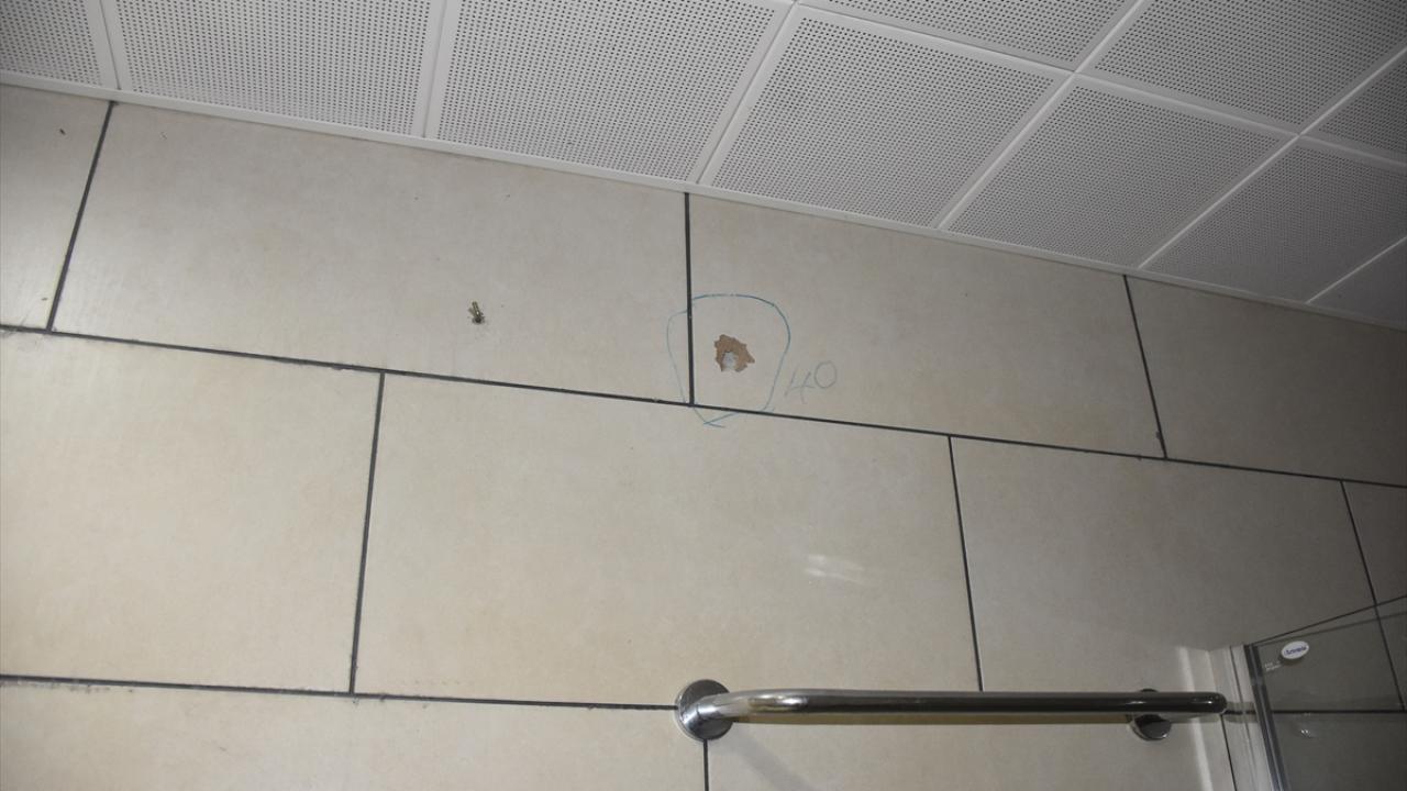 Suikast timinin saldırısı sırasında çatışmanın yaşandığı otel odasında darbecilere karşı koyan bir koruma polisine ait kelepçe, kan izleri bulunan yatağın üzerinde dururken bir kanepenin üzerinde 18 kurşun izi dikkatleri çekiyor.