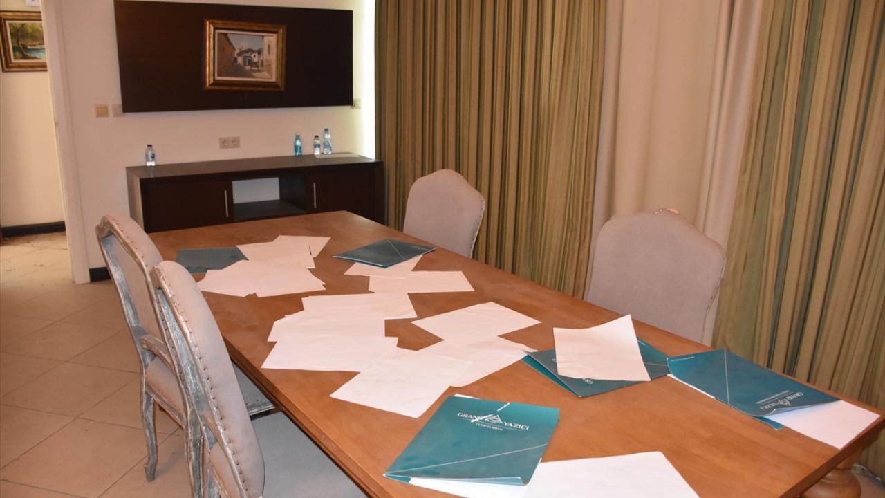 Cumhurbaşkanı Erdoğan`ın kaldığı odanın arkasındaki bölümdeki yerde seccadelerin serili olması, toplantı masasındaki dağınık dosyalar, suikast timine karşı güvenlik güçlerinin kahramanca karşı koyduğu oteldeki bir başka ayrıntı olarak öne çıkıyor.