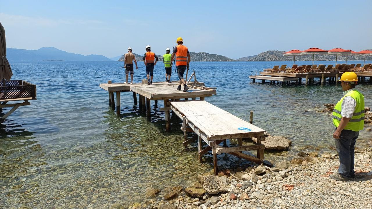 Ekipler, kaçak iskelelerin yıkımına başladı. Zabıta ekipleri de yıkım sırasında güvenlik önlemi aldı.