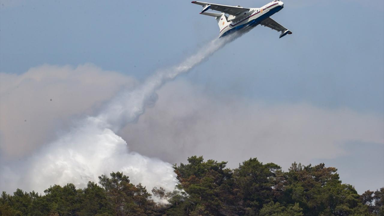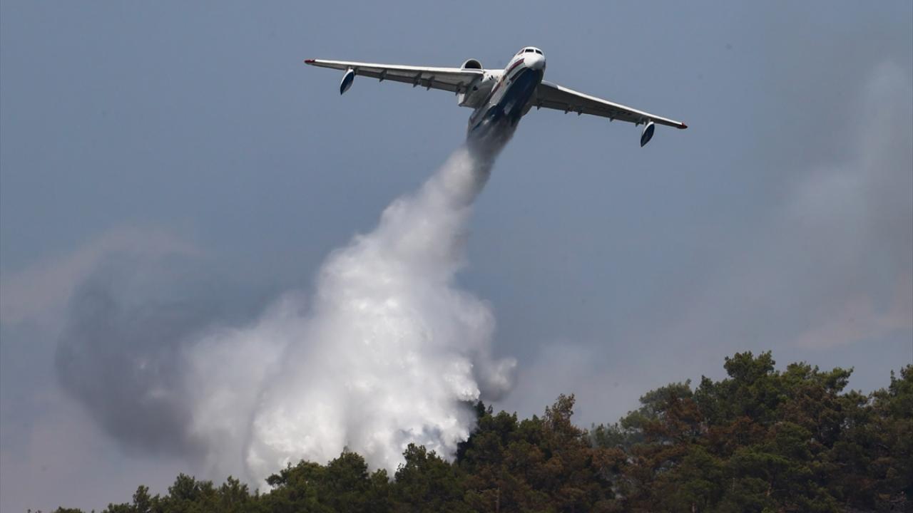 Su üzerinde durmadan 18-20 saniyede yaklaşık 12 ton su basma kapasitesine sahip olan uçak, diğer hava güçlerinin de desteğiyle yangınla mücadele ediyor.