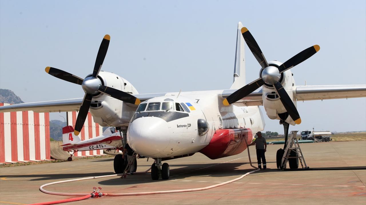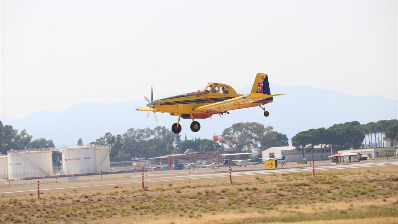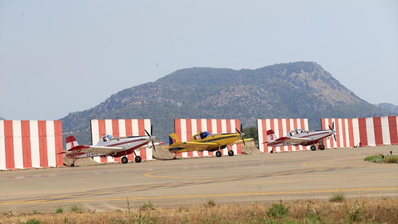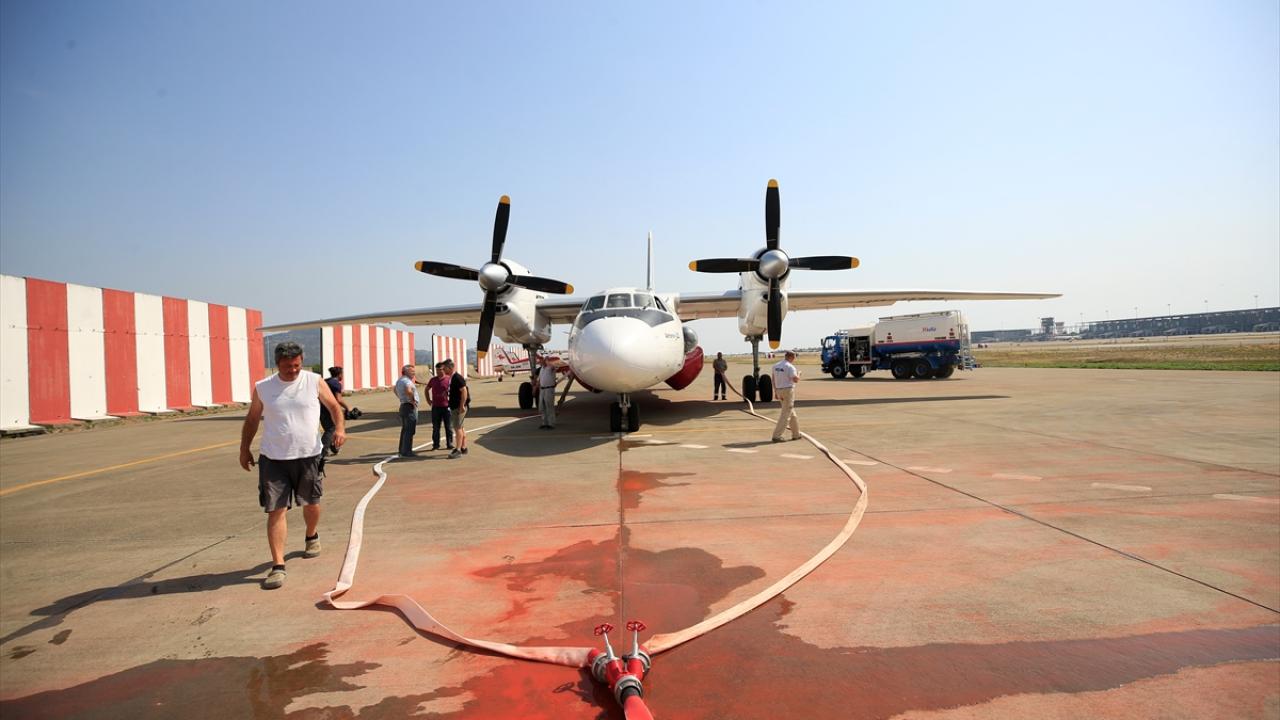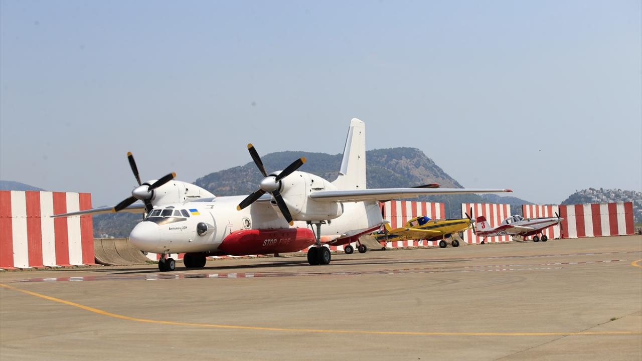 Marmaris'te salı günü akşam saatlerinde başlayan ve halen devam eden yangınla mücadele eden hava araçları, Dalaman Havalimanı'nda görüntülendi.