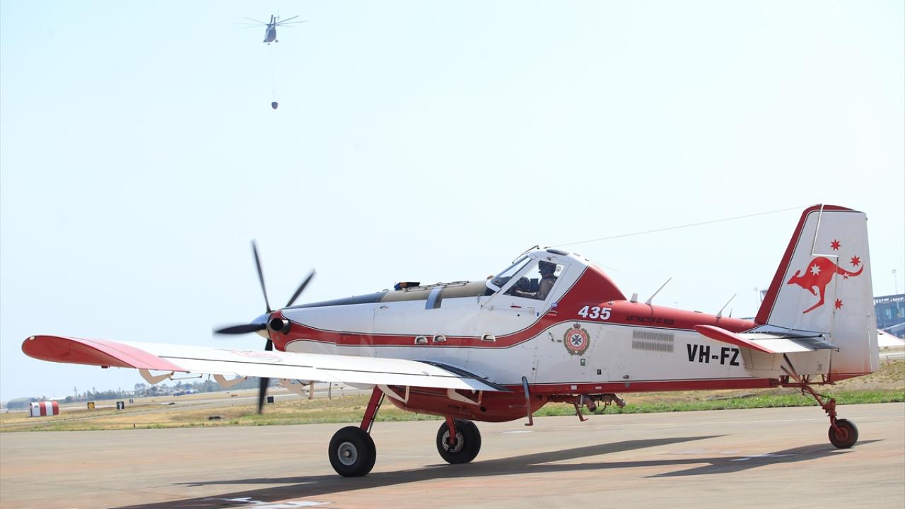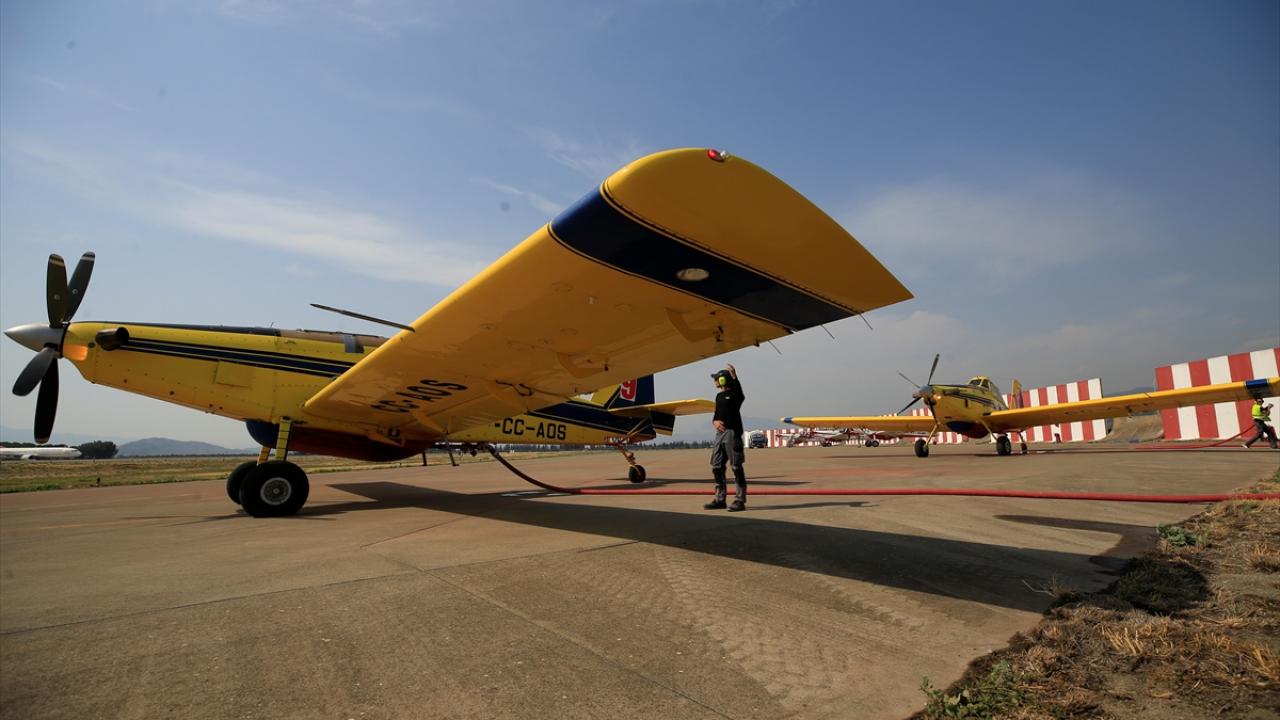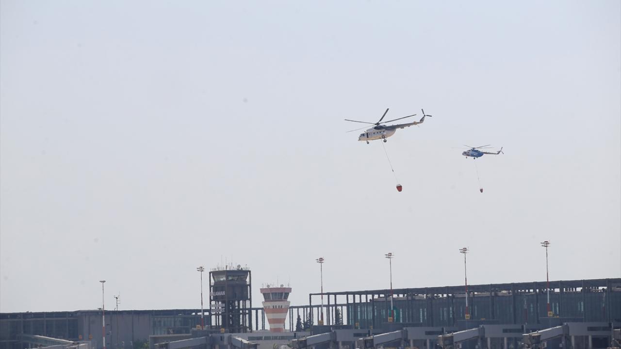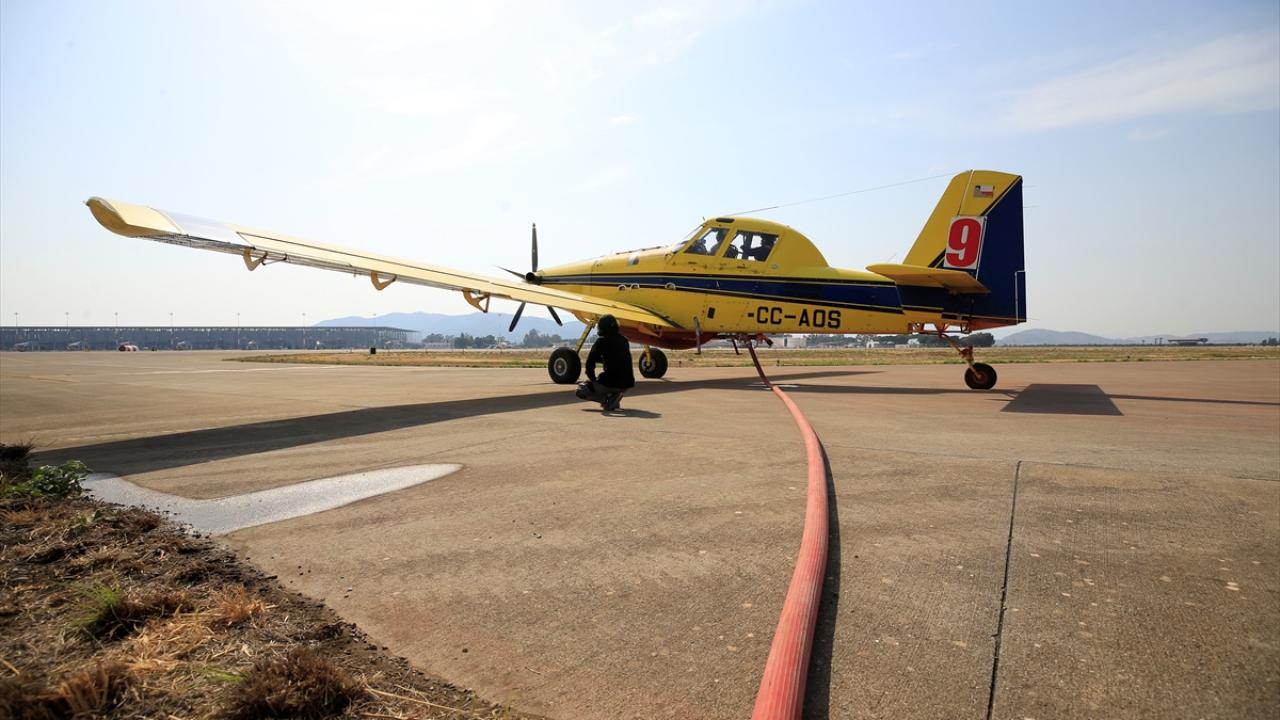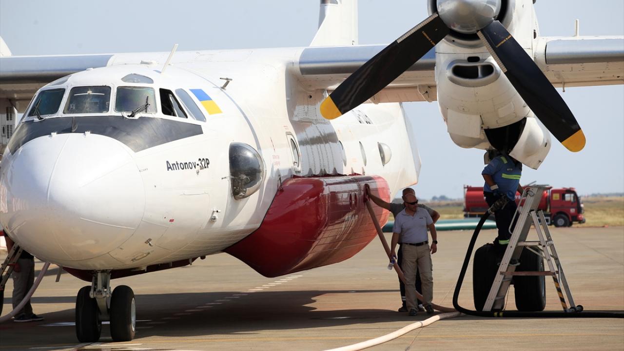Marmaris'te salı günü akşam saatlerinde başlayan ve halen devam eden yangınla mücadele eden hava araçları, Dalaman Havalimanı'nda görüntülendi.
