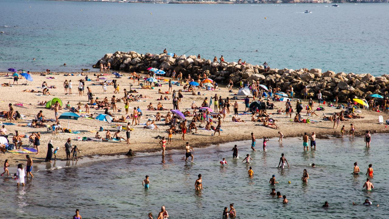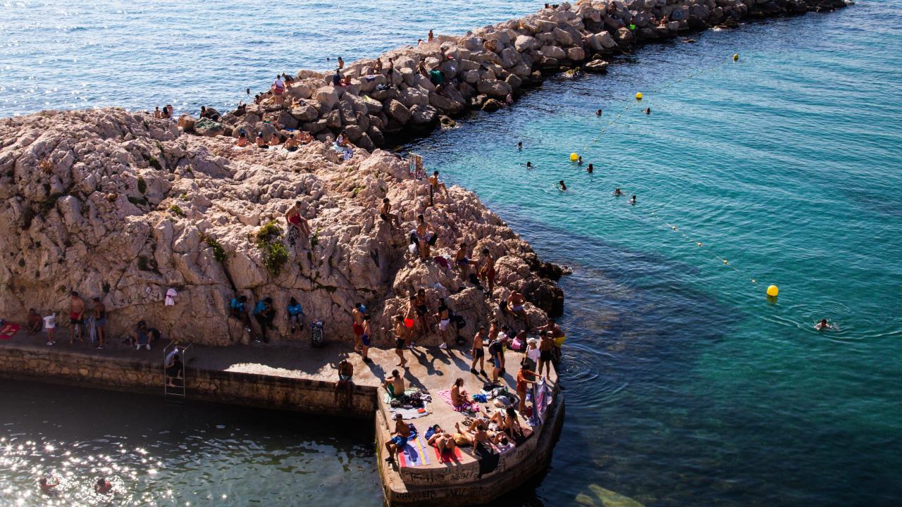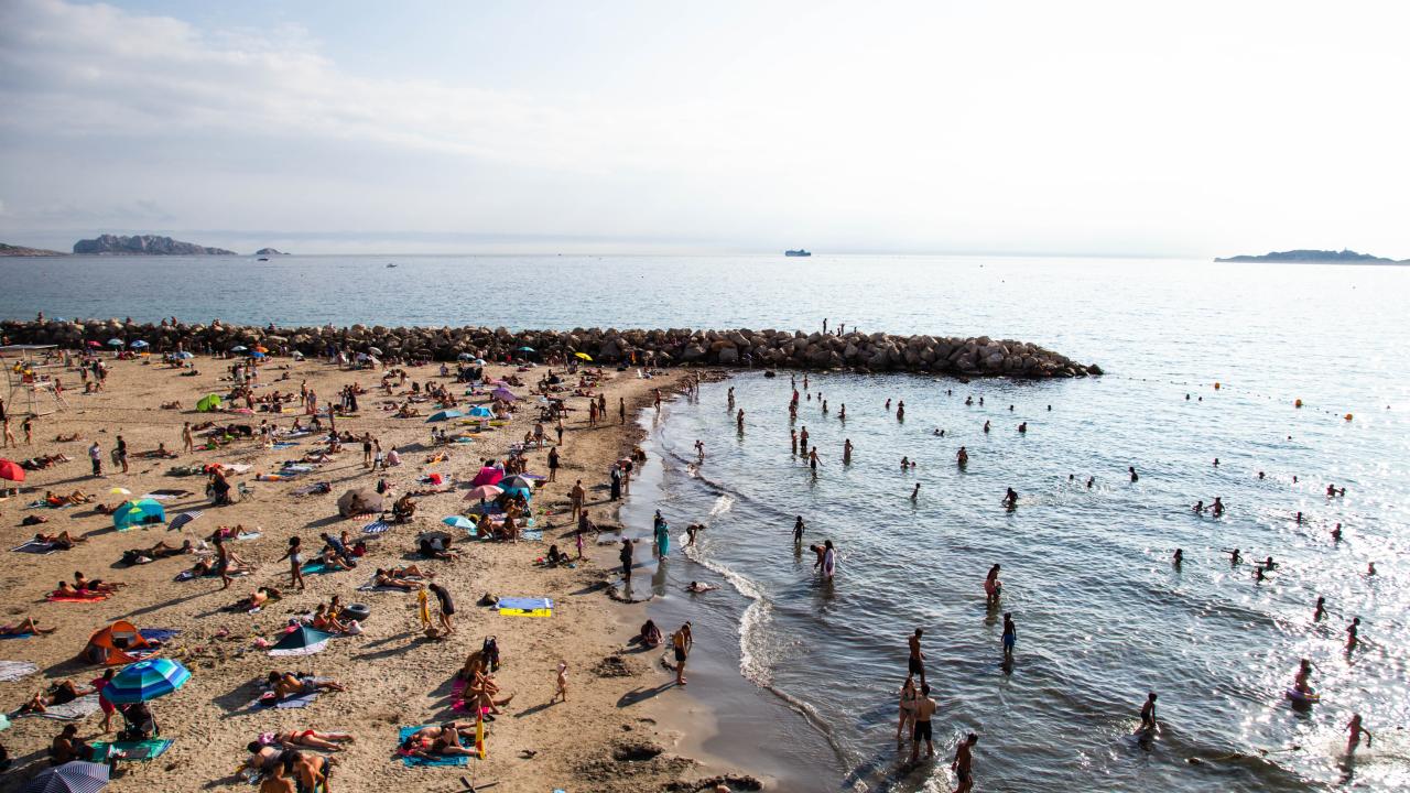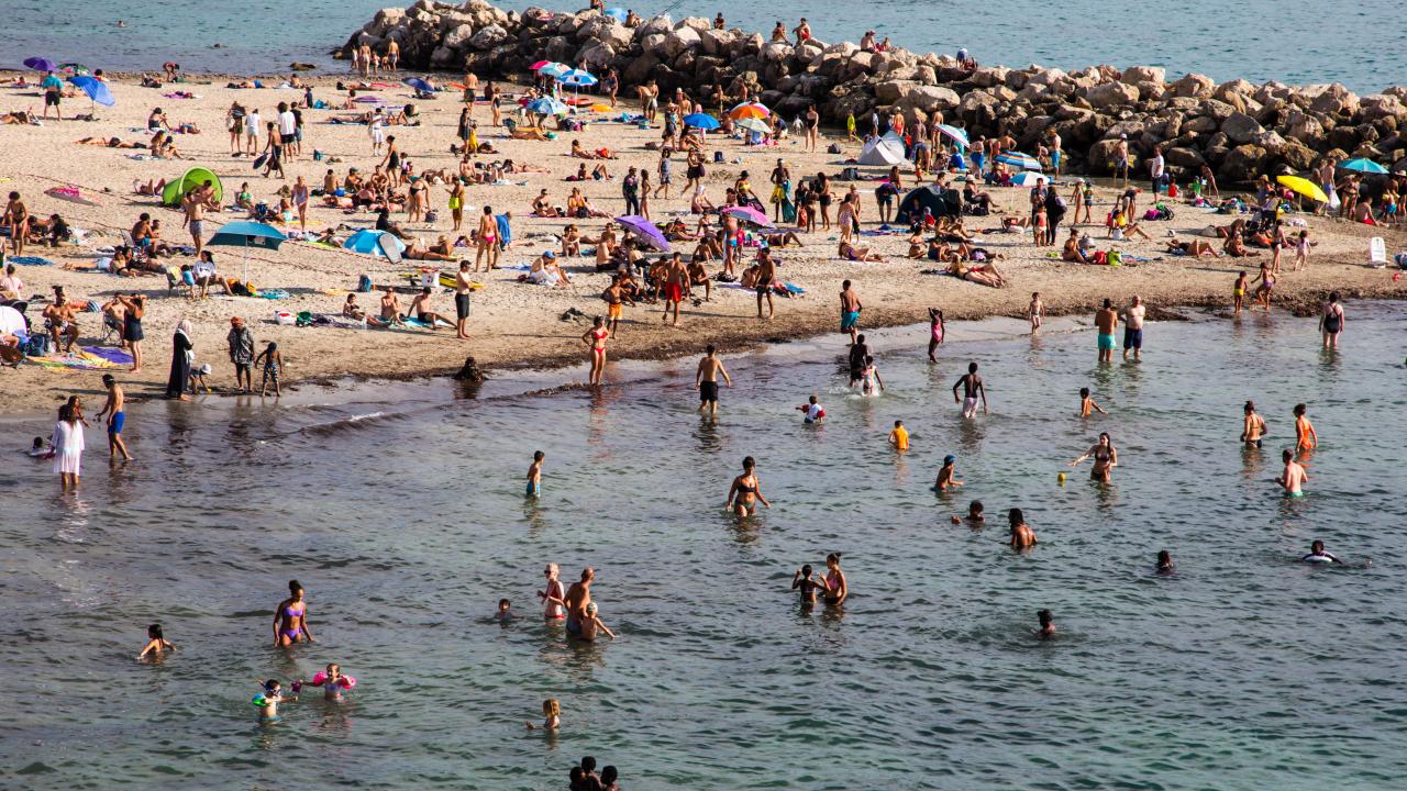 Fransa'nın Marsilya kentinde aşırı sıcaklardan bunalan halk, Peygamber Plajı'na akın etti.