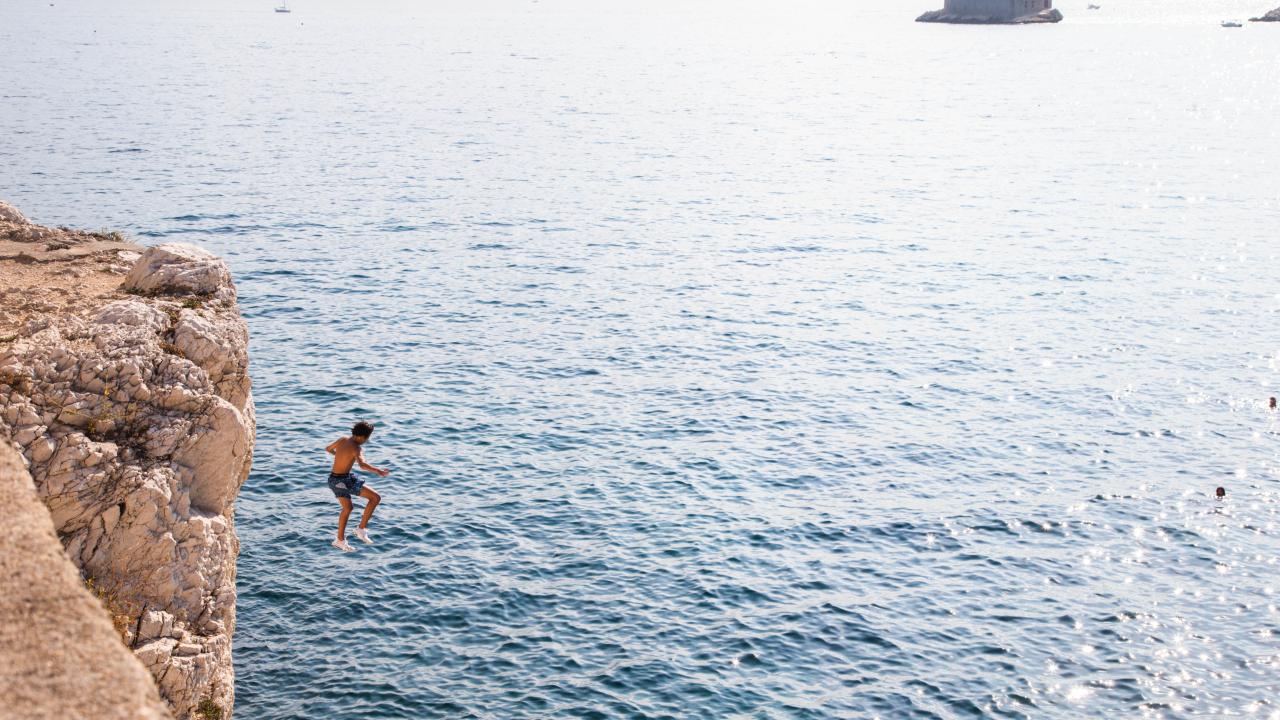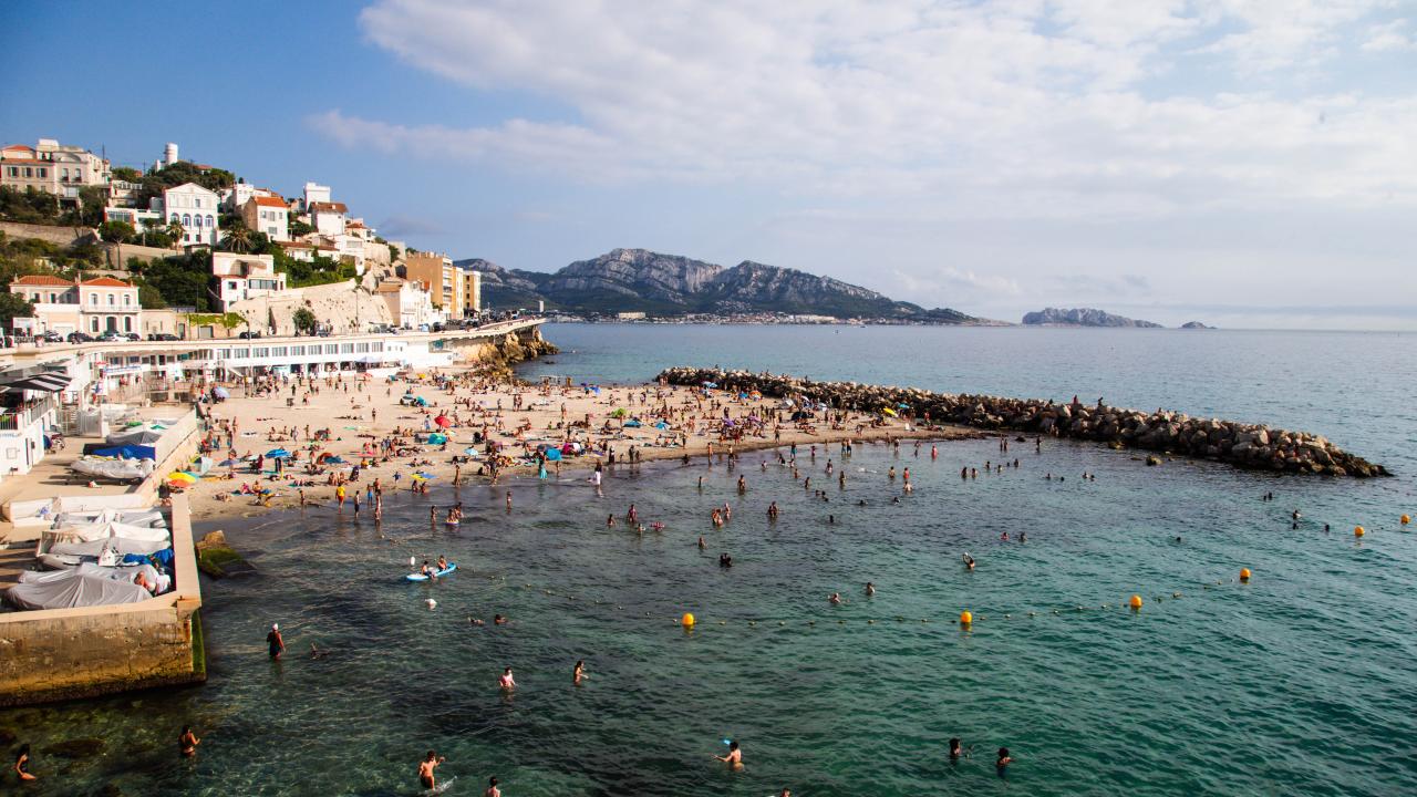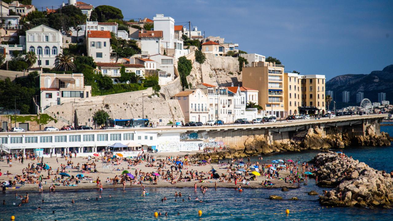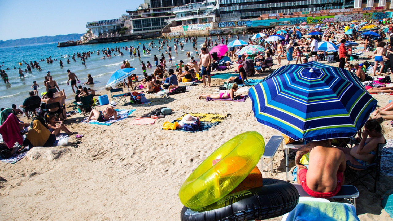Fransa'nın Marsilya kentinde aşırı sıcaklardan bunalan halk, Peygamber Plajı'na akın etti.