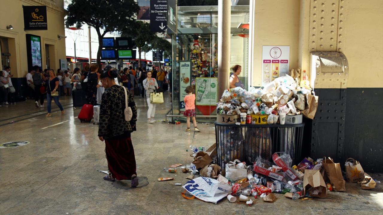 Fransa'nın Marsilya kentinde temizlik işçilerinin grevi nedeniyle metro istasyonları çöp yığınlarıyla doldu. Saint-Charles istasyonundaki grev 8 gündür devam ediyor.