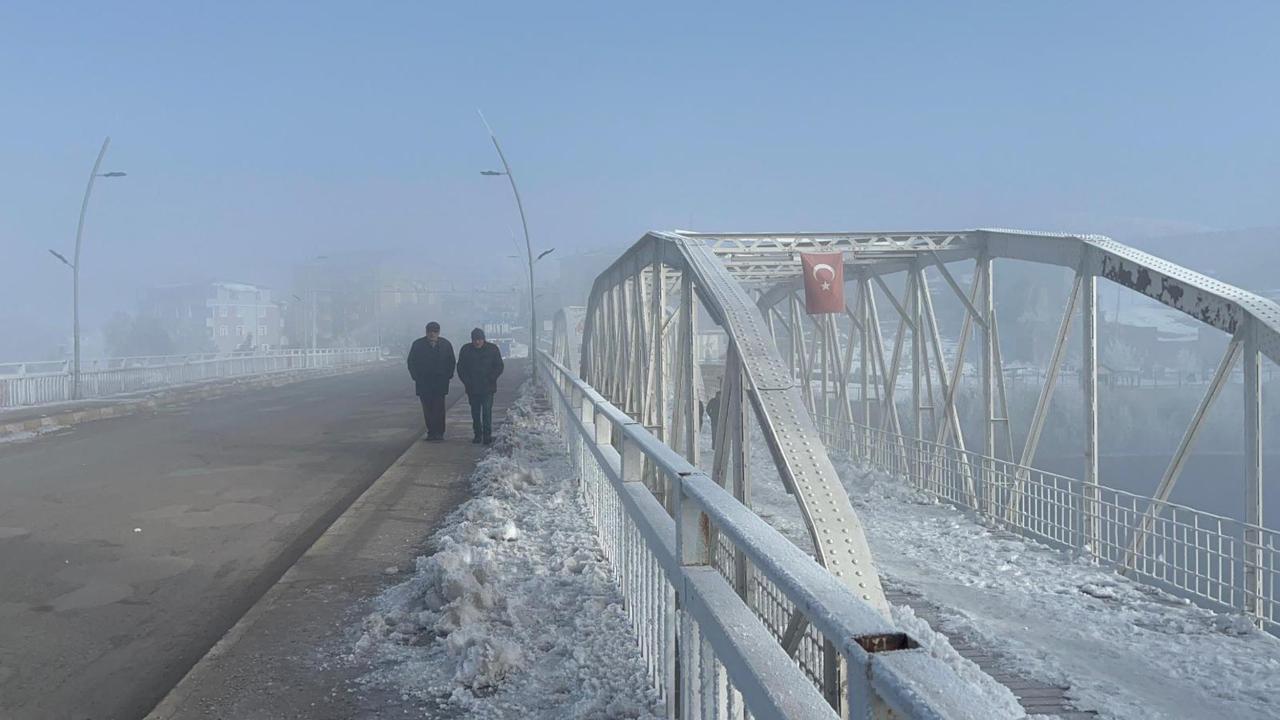 Sabah saatlerinde kent merkezinde sis etkili olurken soğuk hava nedeniyle ağaç dalları ve bitkiler kırağıyla beyaza büründü.