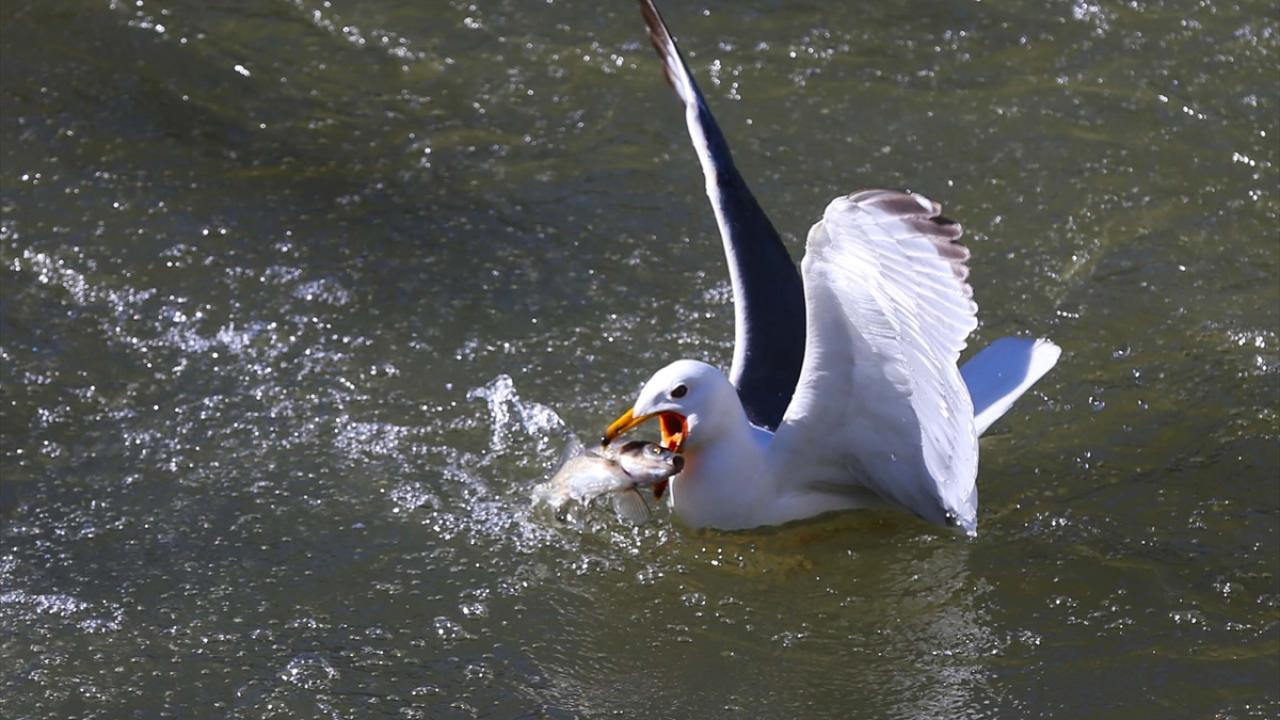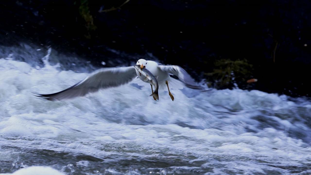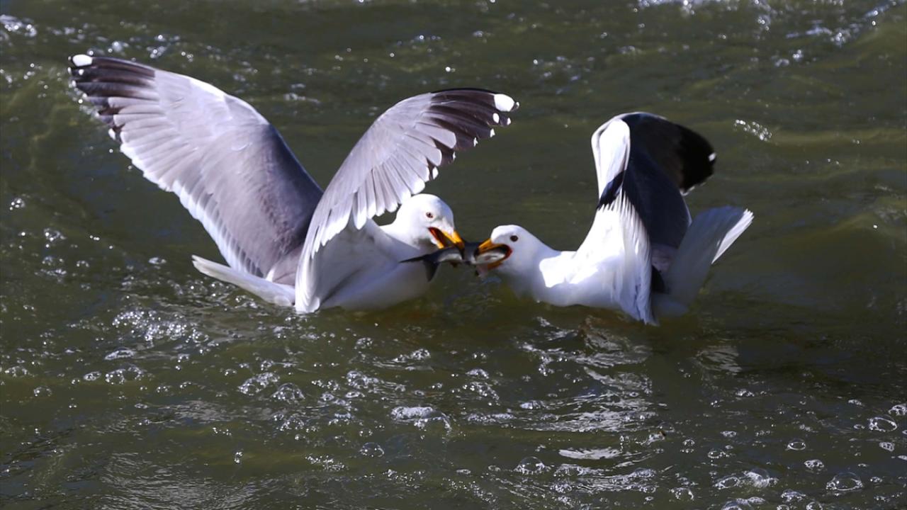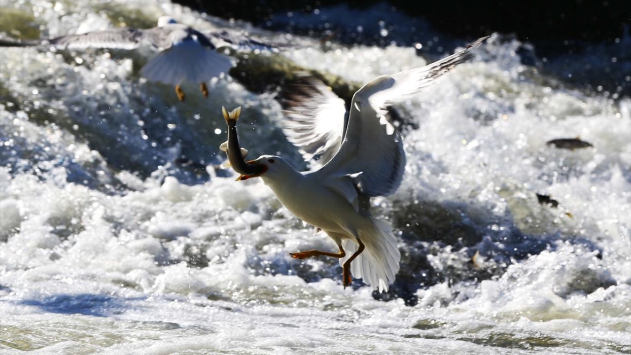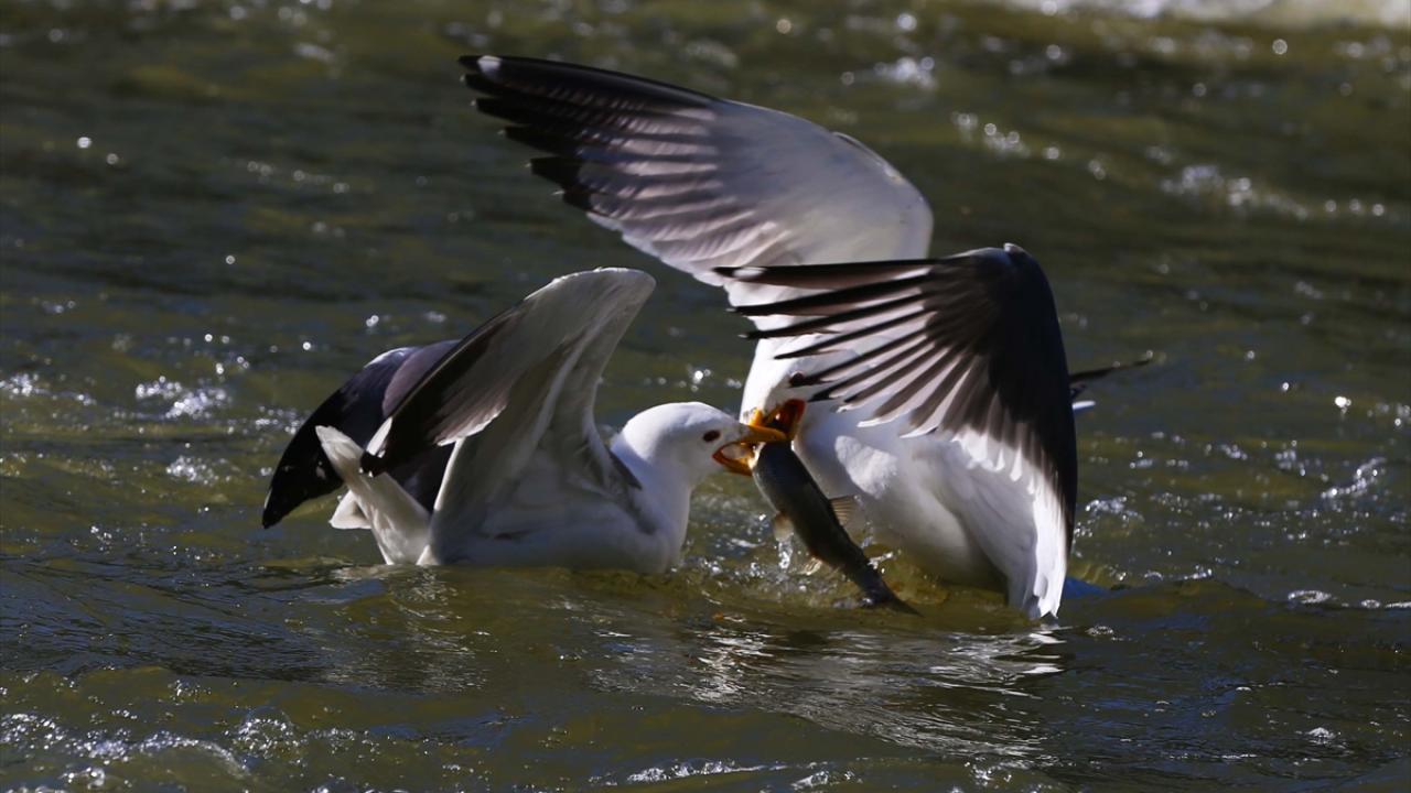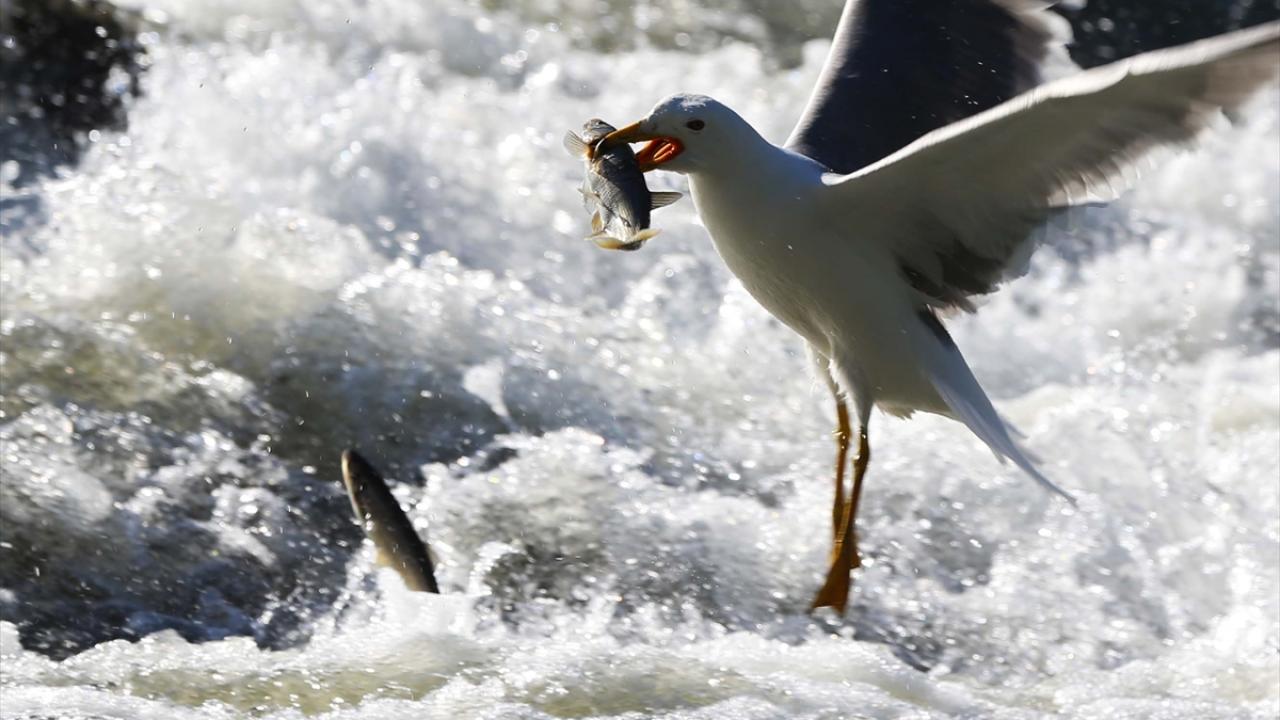 Martıların, göç yolculuğundaki inci kefallerini avlama mücadelesi